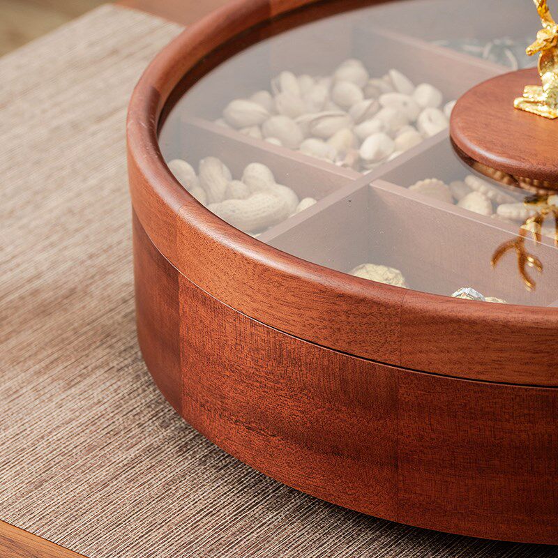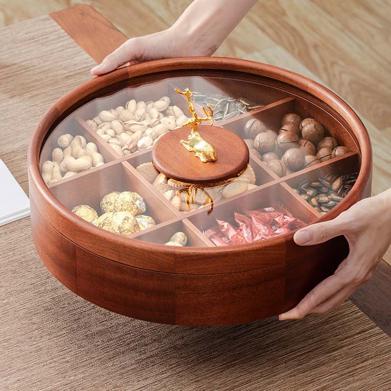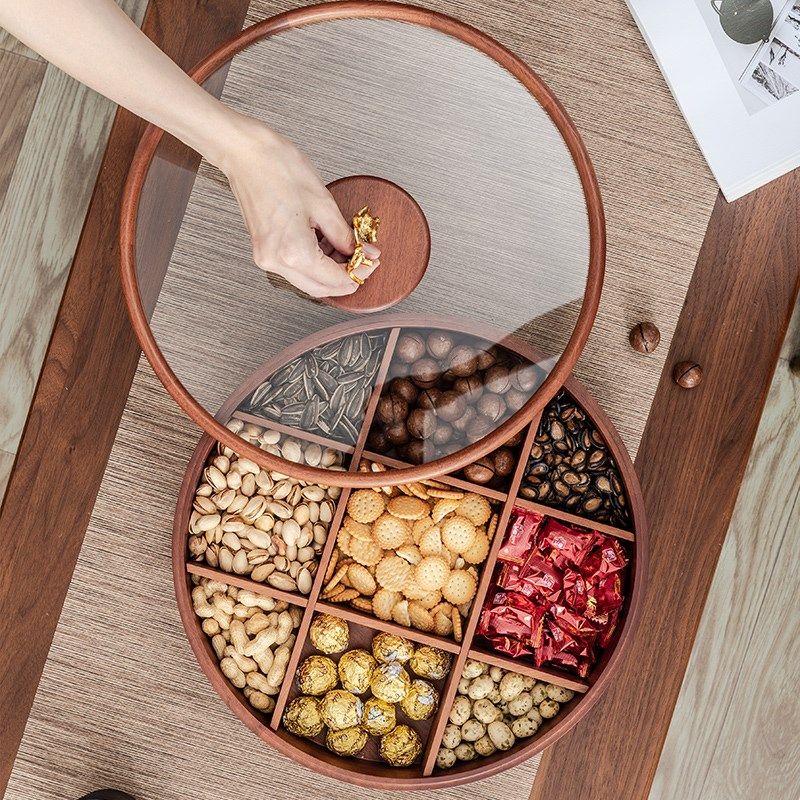 📚 客厅茶几零食摆放盘实木轻奢干果盒分格盘水果盘桌面收纳点心托盘