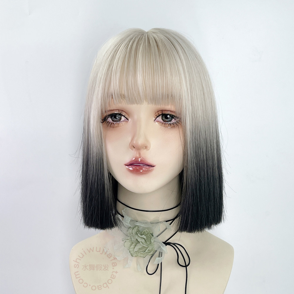 亚文化齐肩头套一刀切假发