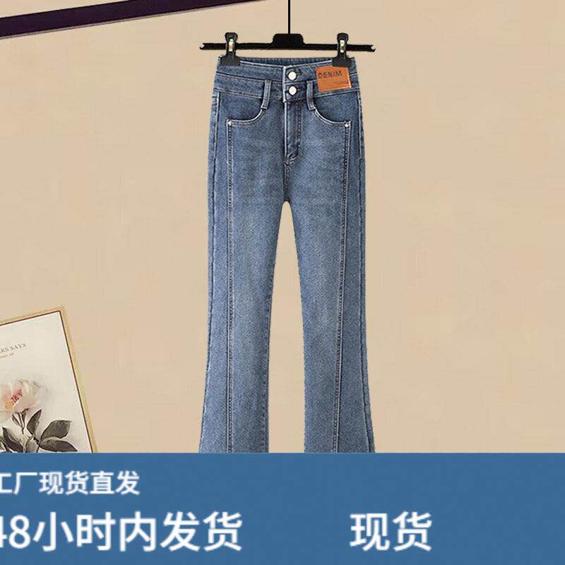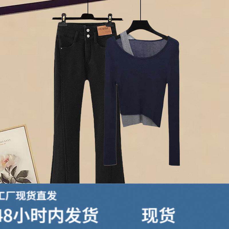 📚 秋季穿搭一整套高级感时尚套装女新款假两件针织毛衣牛仔裤两件套