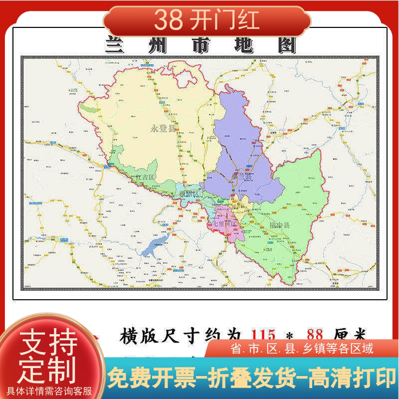 📚 兰州市地图1.15m甘肃省折叠版初中小学生成人书房装饰画地图墙贴