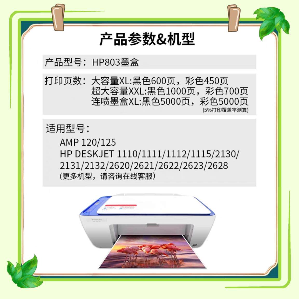 📚 变彩803墨盒适用于HP DeskJet 2600喷墨打印机(Product Na. Y5H72D 803)803XL加墨版墨盒 连喷 HP803墨水