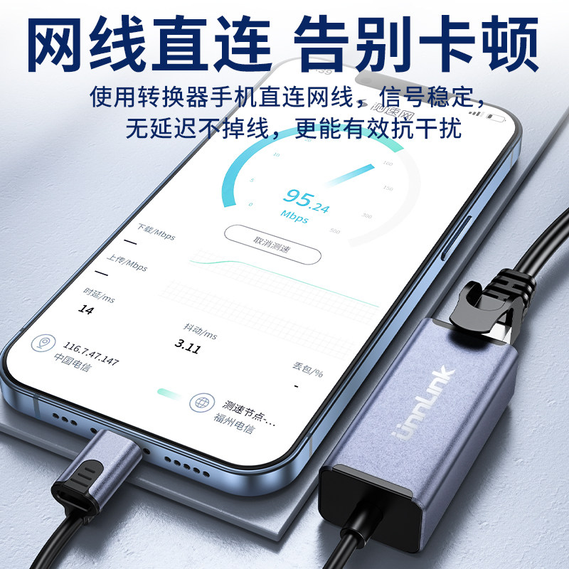 📚 优联 适用苹果手机lightning转网口接网线转换器iPhone以太网连接去iPad网卡平板笔记本电脑直连网络直播游戏