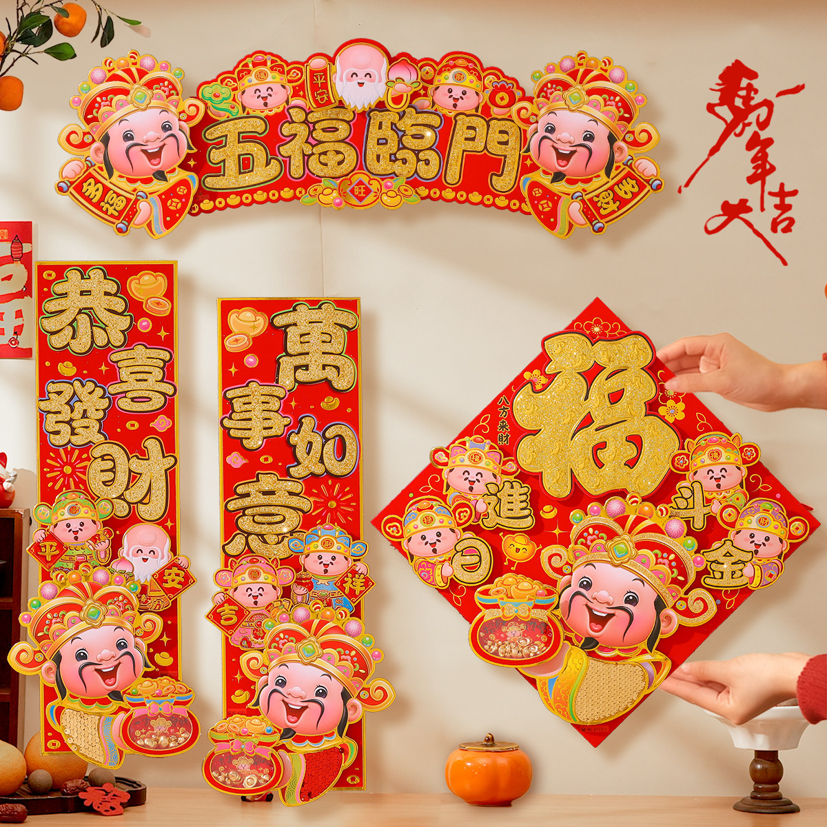📚 2026马年小对联财神挥春过年门贴四字挥春横批贴画店铺新居装饰品