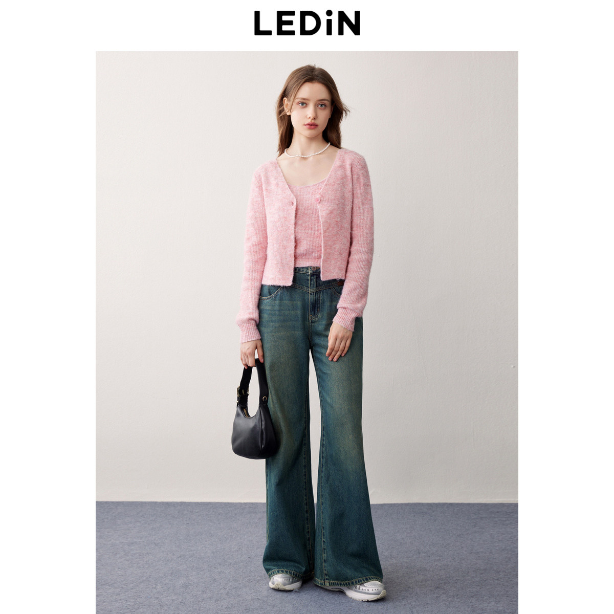 📚 乐町大领背心开衫两件套女春季清甜格雷系针织衫修身上衣