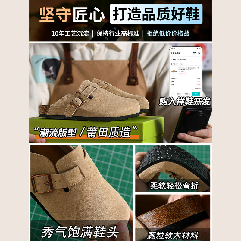 📚 真皮勃肯鞋凉三喜同款复古新款男款女凉拖钓鱼厚底增高一脚蹬全包