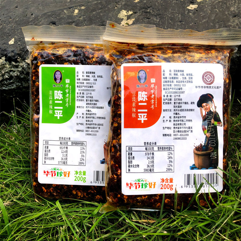 📚 贵州土特产毕节陈二平姜蒜素辣椒豆豉素辣椒辣椒水蘸水 1袋*200克