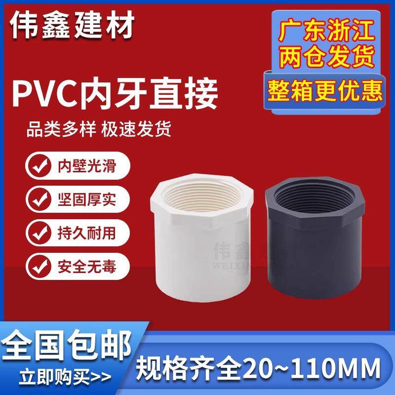 📚 PVC内丝直接 内螺直通螺纹内牙接头20 25 32 40 50 63 75白色灰色