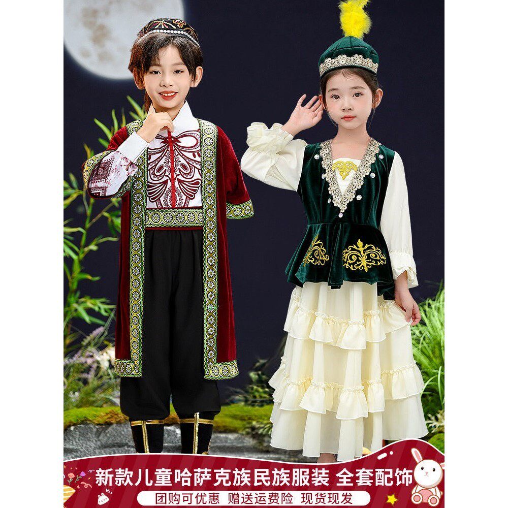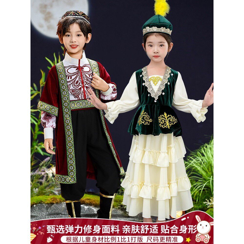 📚 新疆哈萨克族儿童民族服装男童塔吉克族塔塔尔族维吾尔族演出服饰