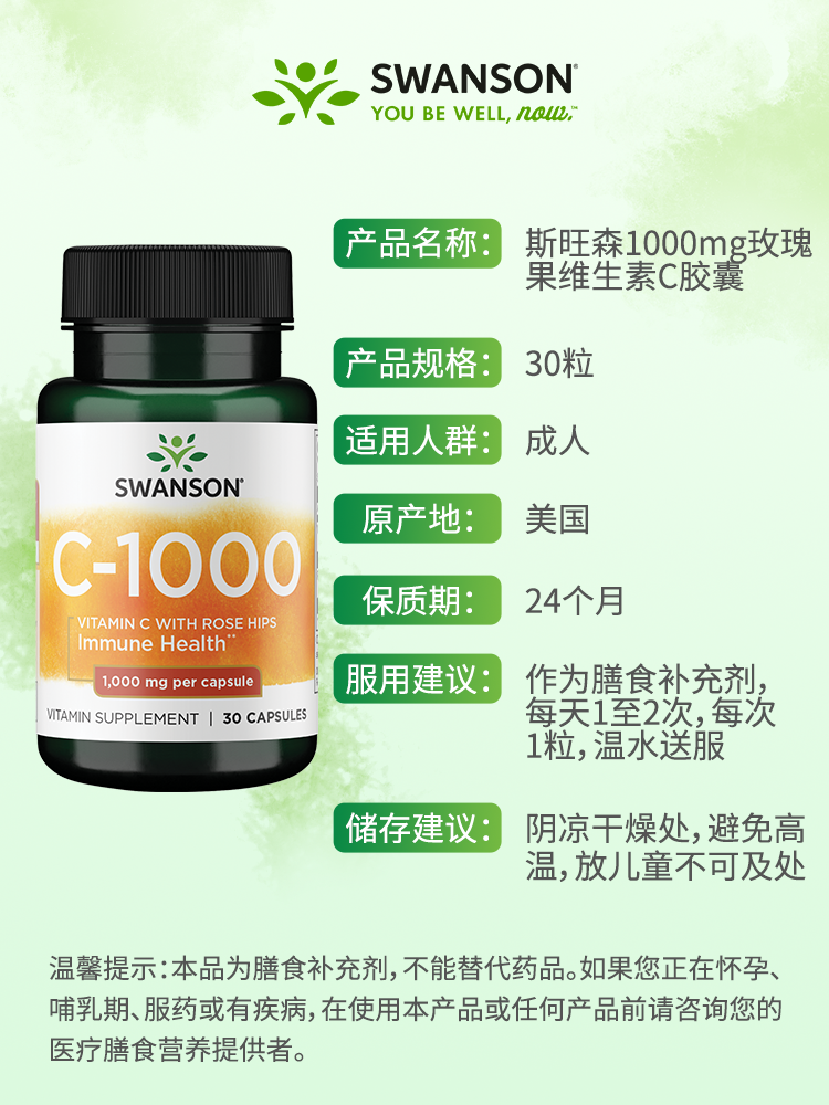 📚 Swanson斯旺森美国进口维生素C胶囊30粒1000mg【临期】