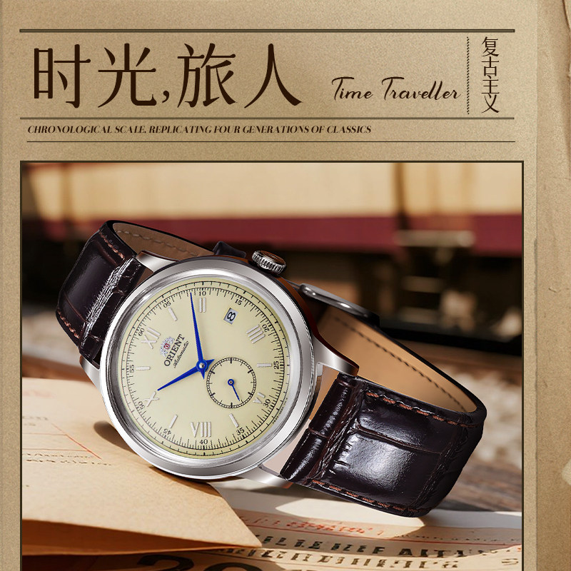 📚 Orient东方双狮机械表男士日本官方手表古典表盘透视表壳腕表进口