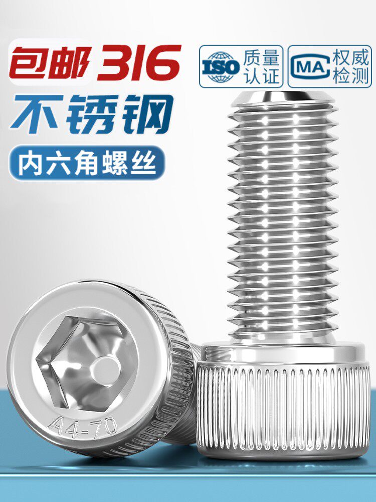 📚 316不锈钢内六角螺丝ISO4762圆柱头螺栓杯头M3M4M5M6M8M10M12-M20