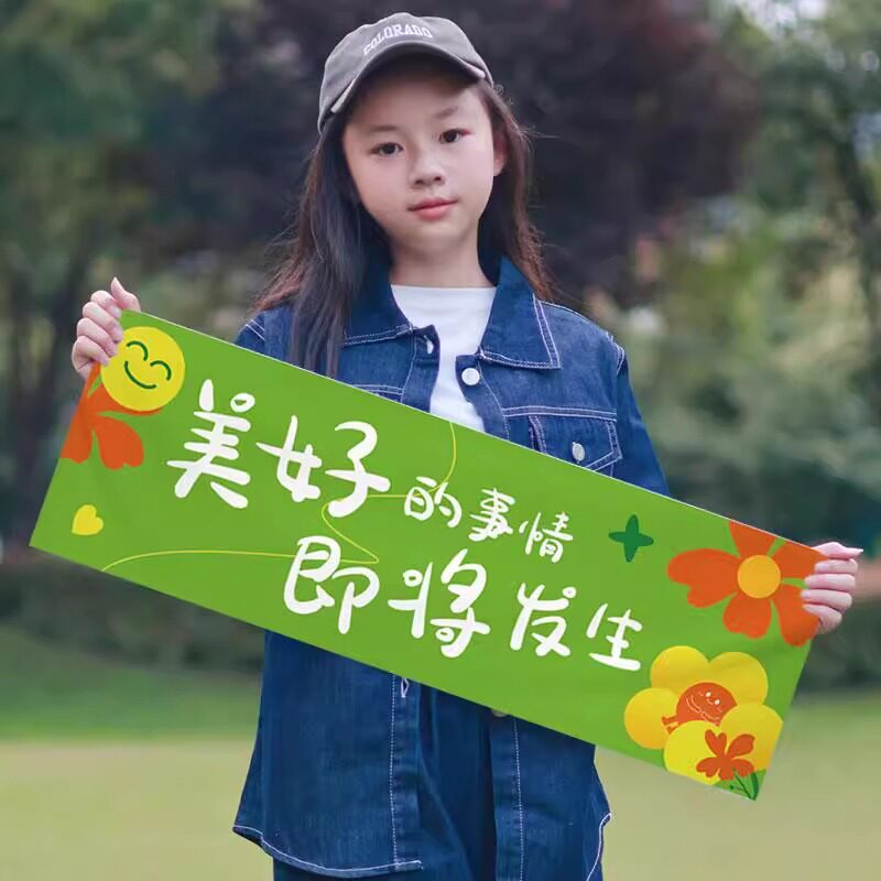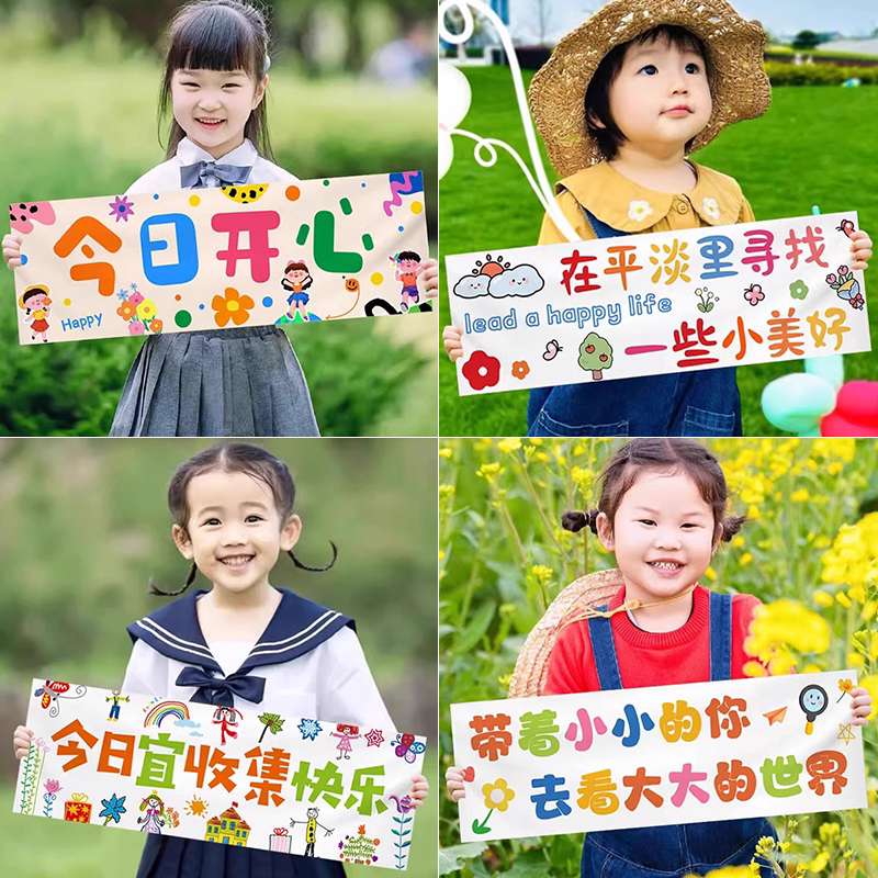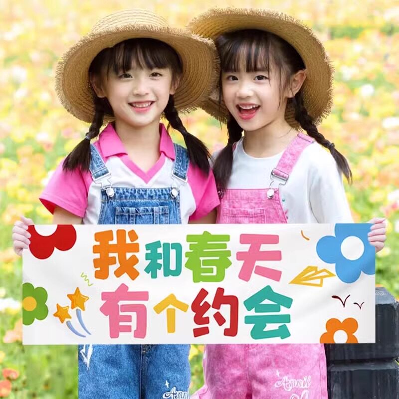 📚 手拉春天主题手持小横幅露营春游户外野餐快乐条幅幼儿园拍照道具