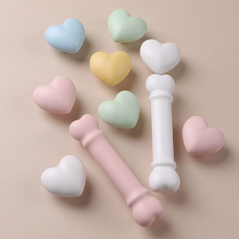 📚 新款爱心拉手现代简约儿童房女孩衣柜门橱柜子抽屉榻榻米粉色把手