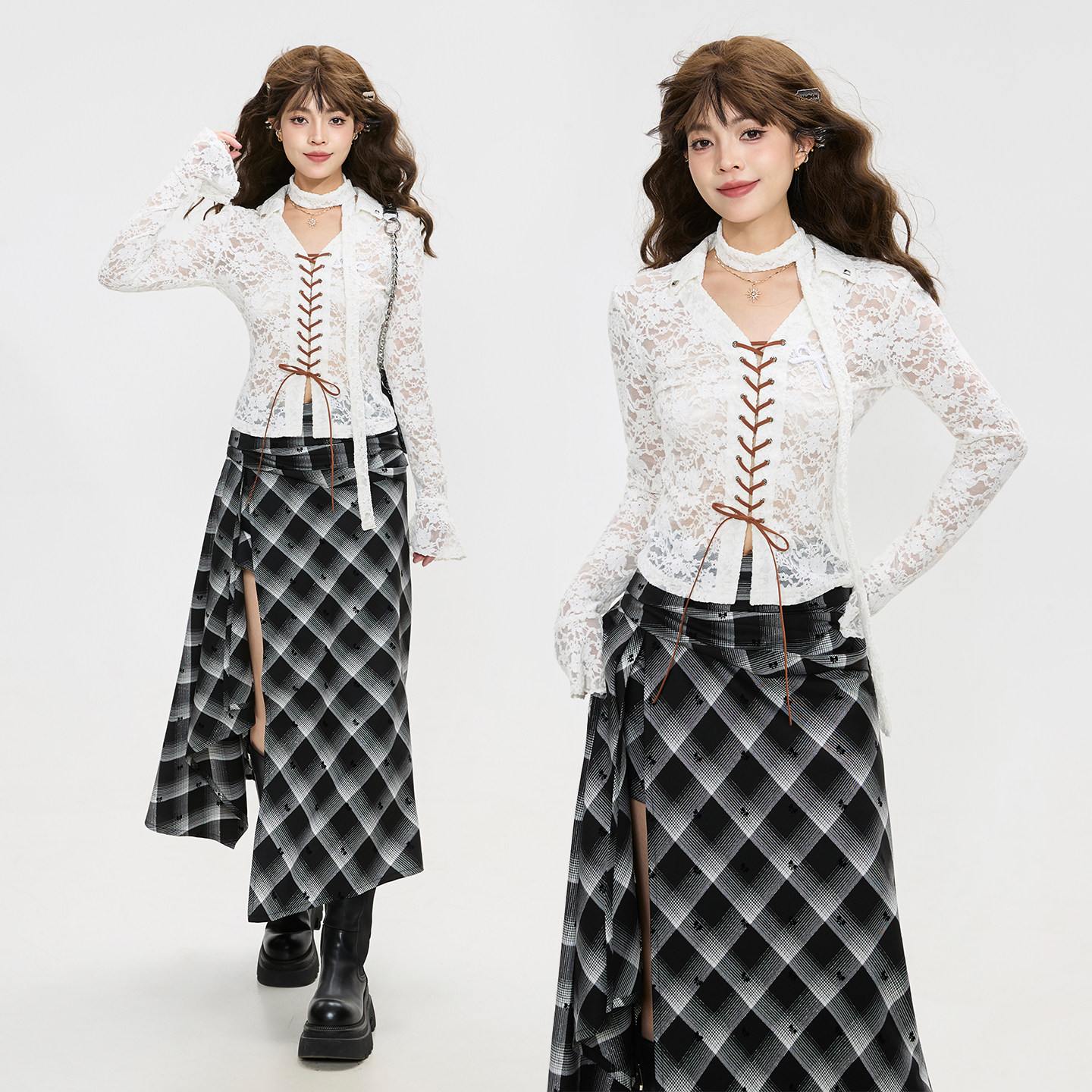 📚 KEIKO 轻盈复古钩花镂空蕾丝衬衫女26春季绑带设计内搭打底上衣