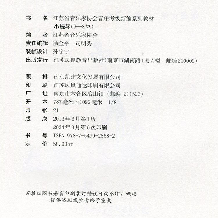 📚 小提琴6-8级 江苏省音乐家协会音乐考级新编系列教材 小提琴 6-8级 江苏凤凰教育出版社