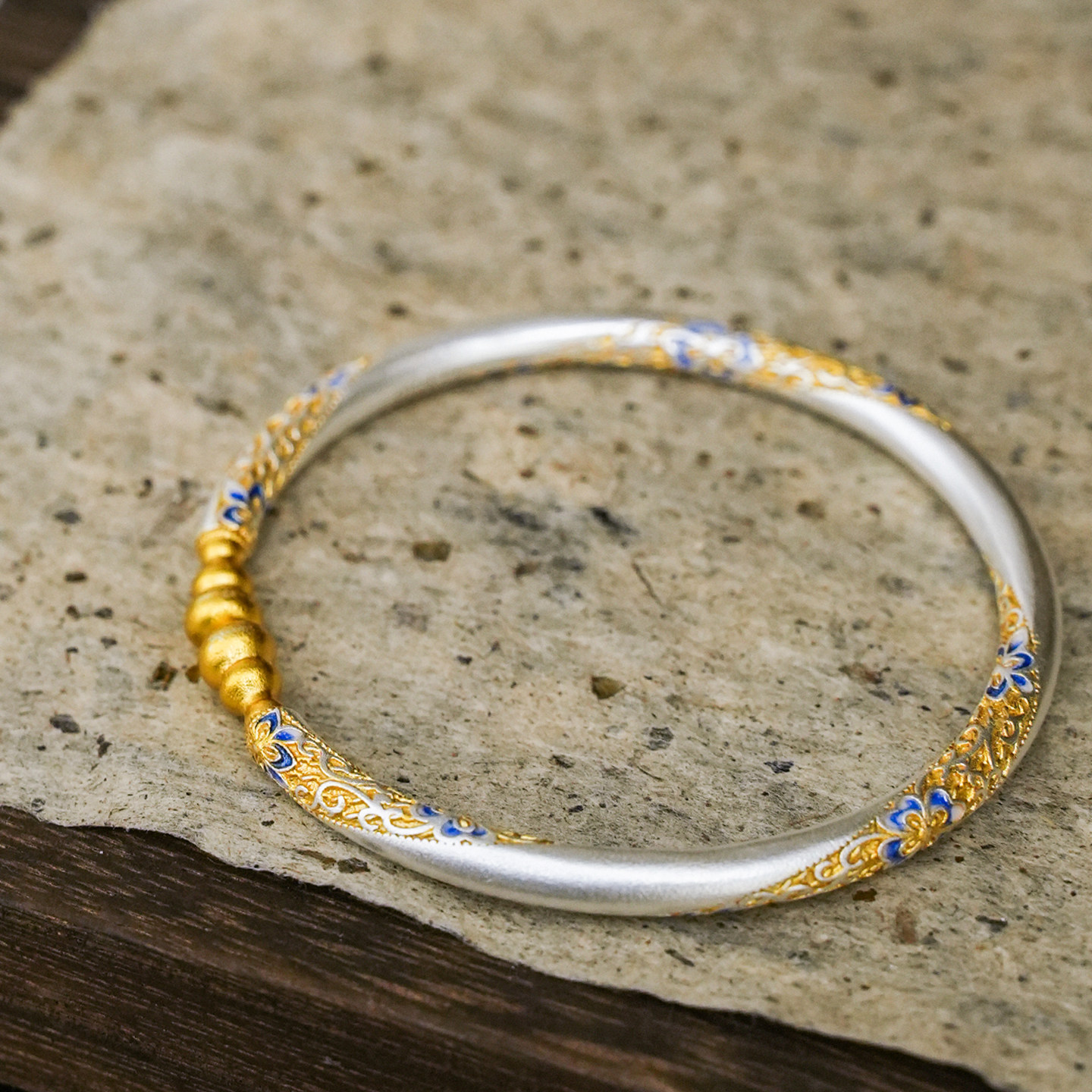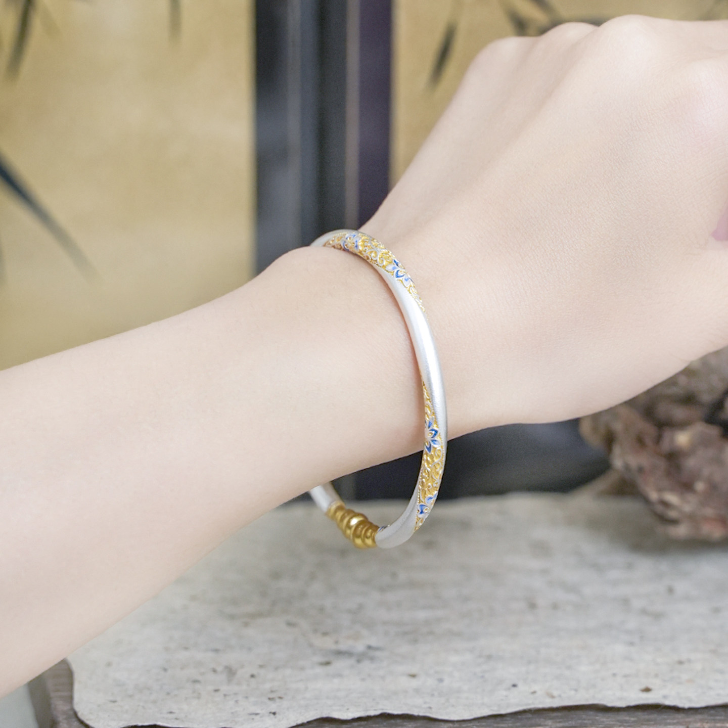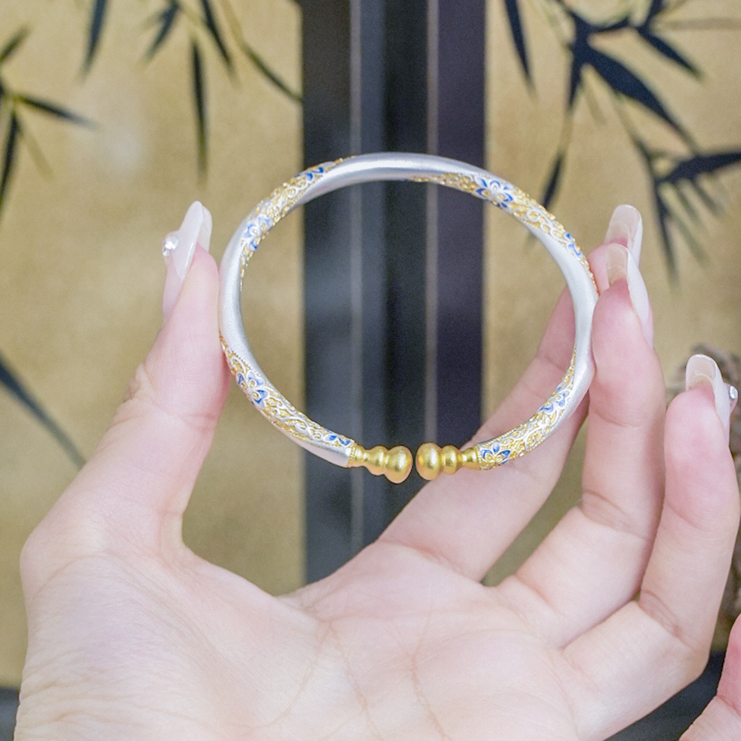 📚 沁恋足银999描金珐琅彩葫芦繁花开口实心手镯国风新中式古法手环
