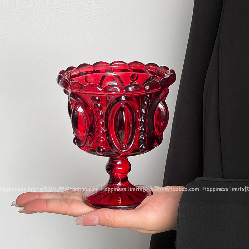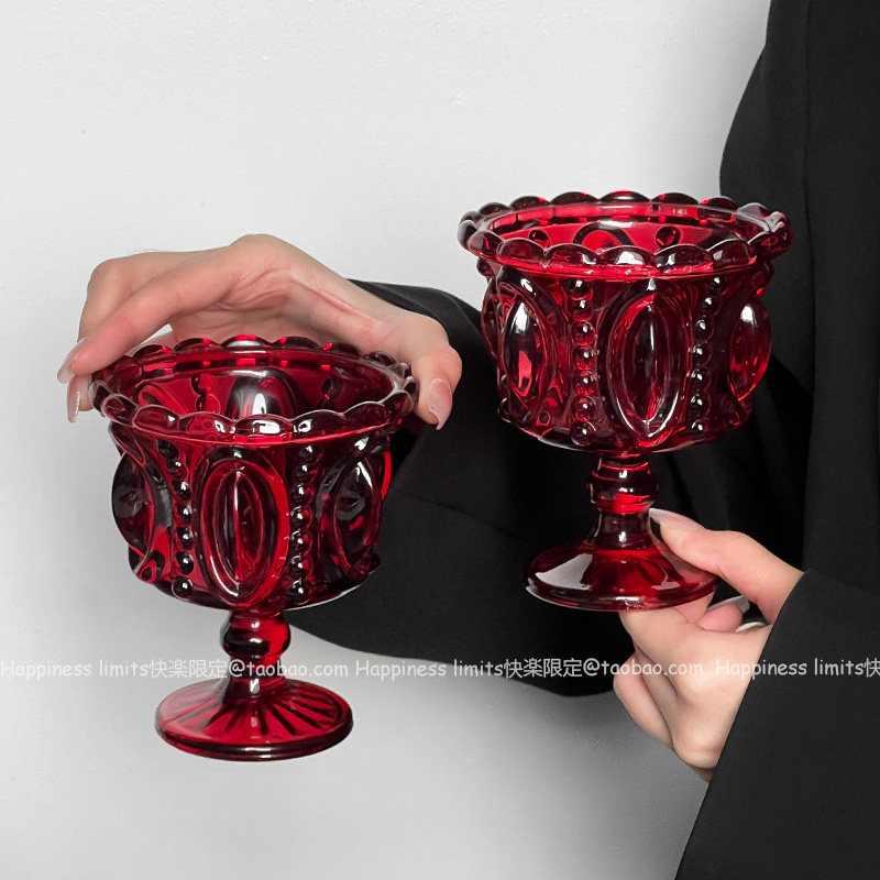 🎀今天我要给大家分享一款超级惊艳的饮品杯——小众复古红高脚杯高颜值冰淇淋杯、浮雕酸奶甜品杯、水晶玻璃杯饮品杯!💖