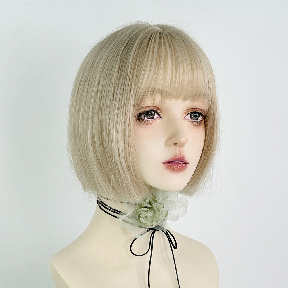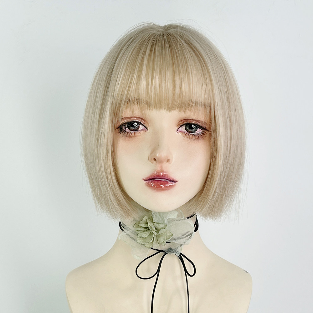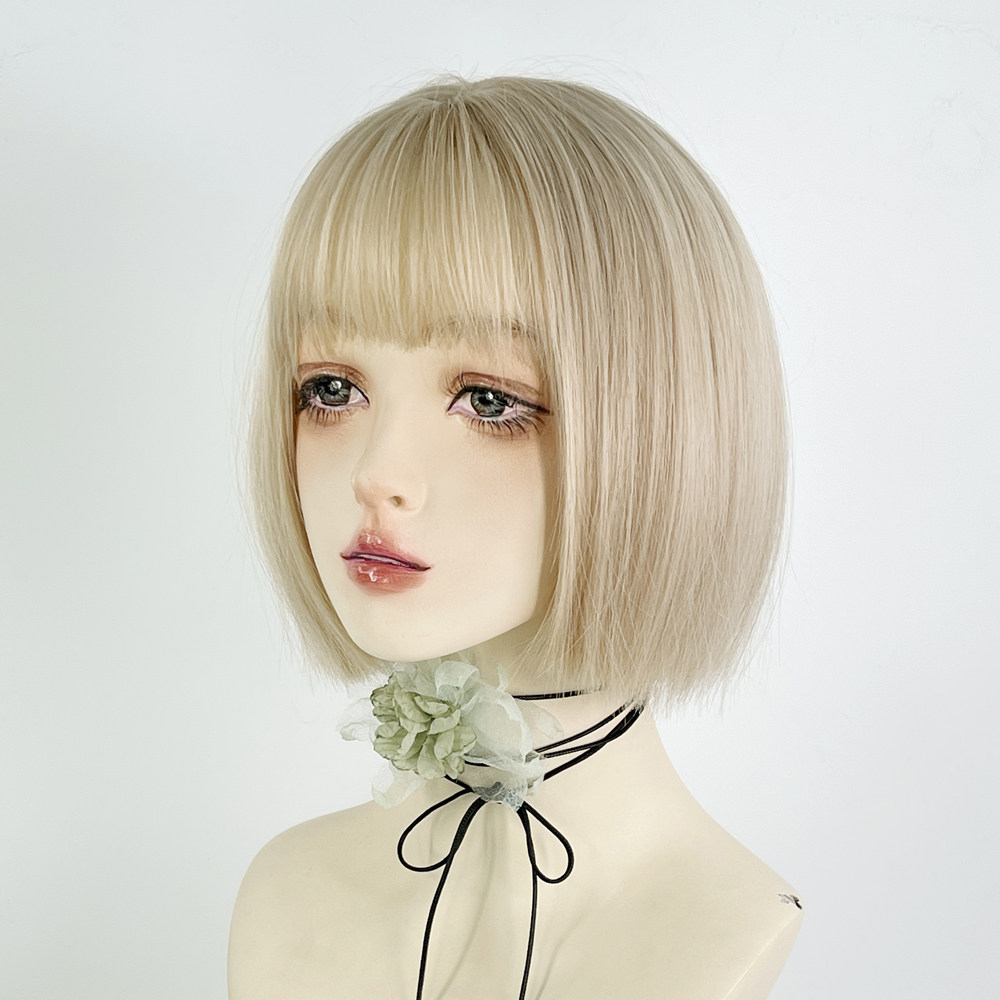 📚 美立方白金色假发一刀切短直发jk女团全头套浅色y2k波波头万用cos