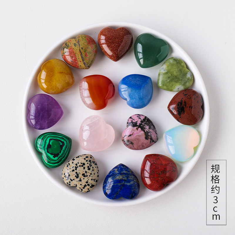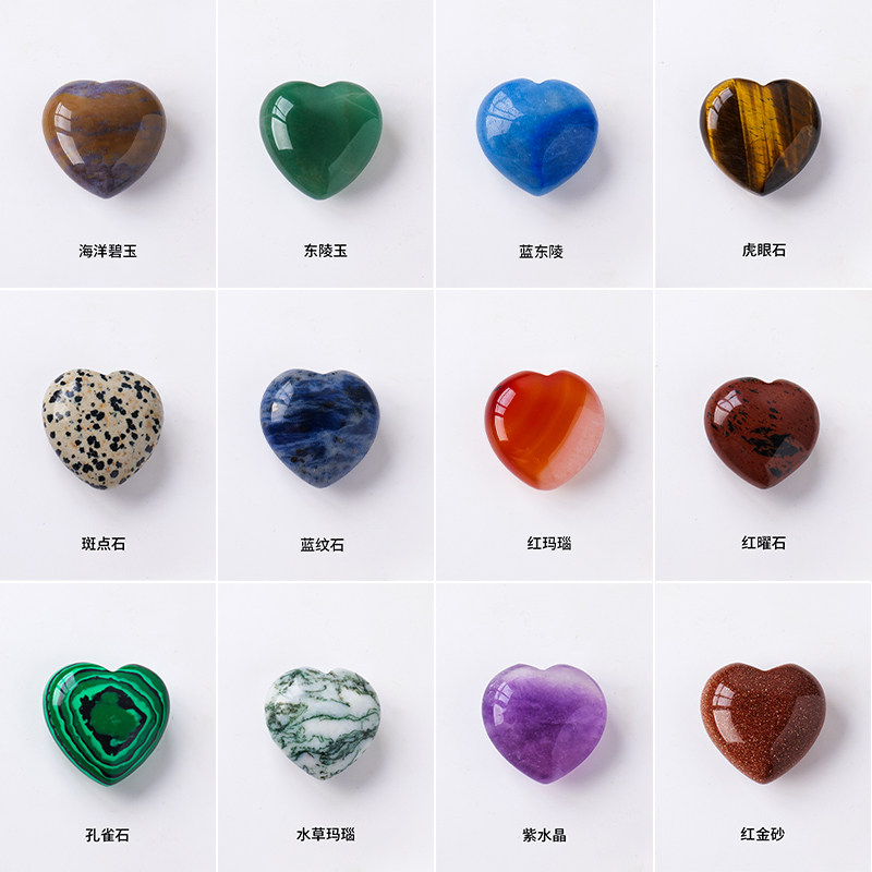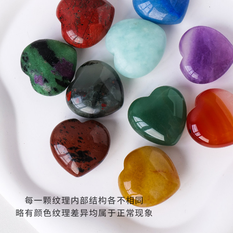 📚 天然水晶原石打磨矿石爱心吊坠毛衣链心形宝石青金石玛瑙装饰摆件