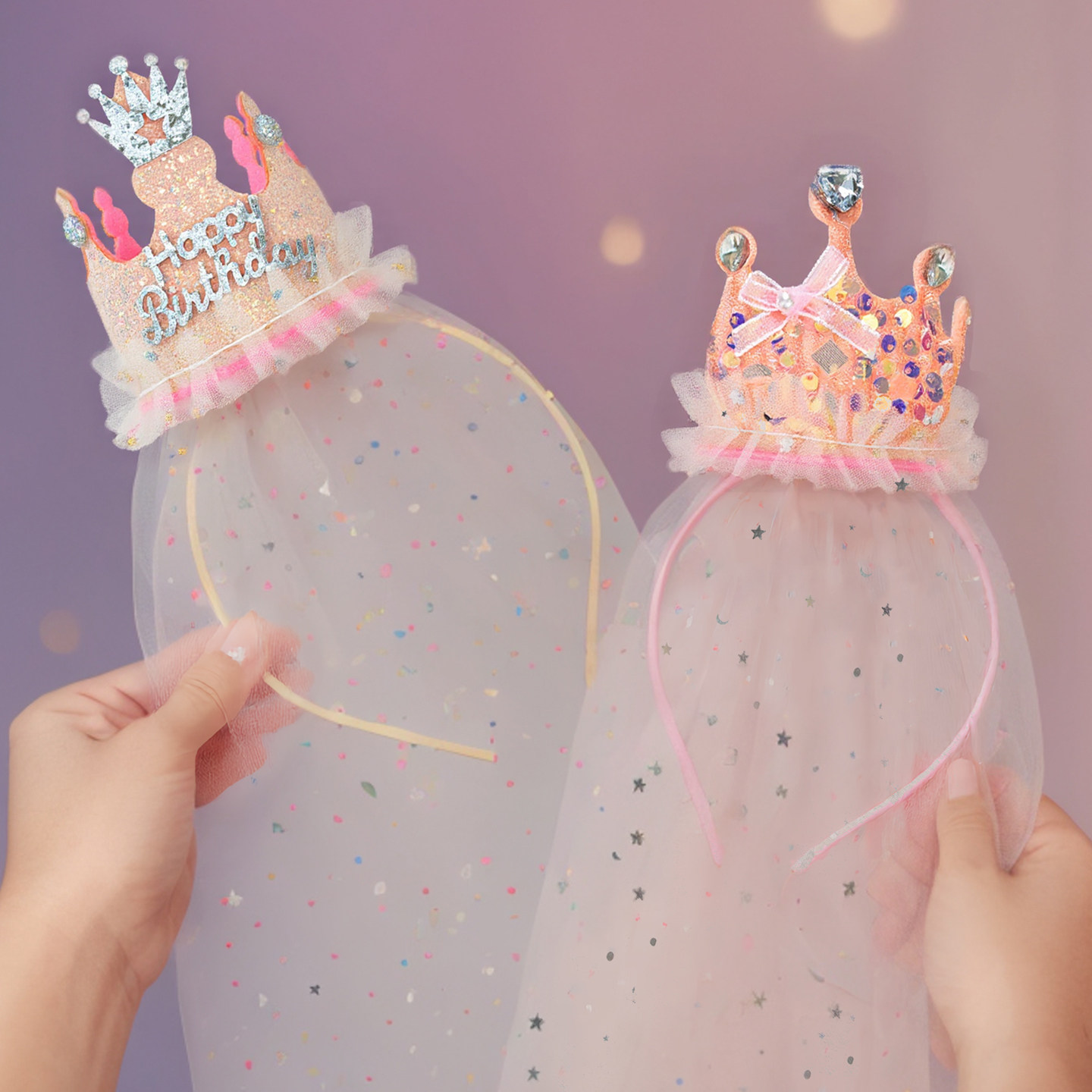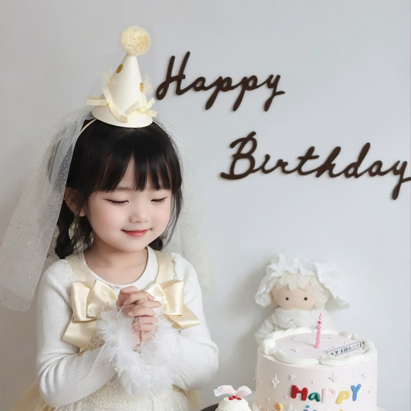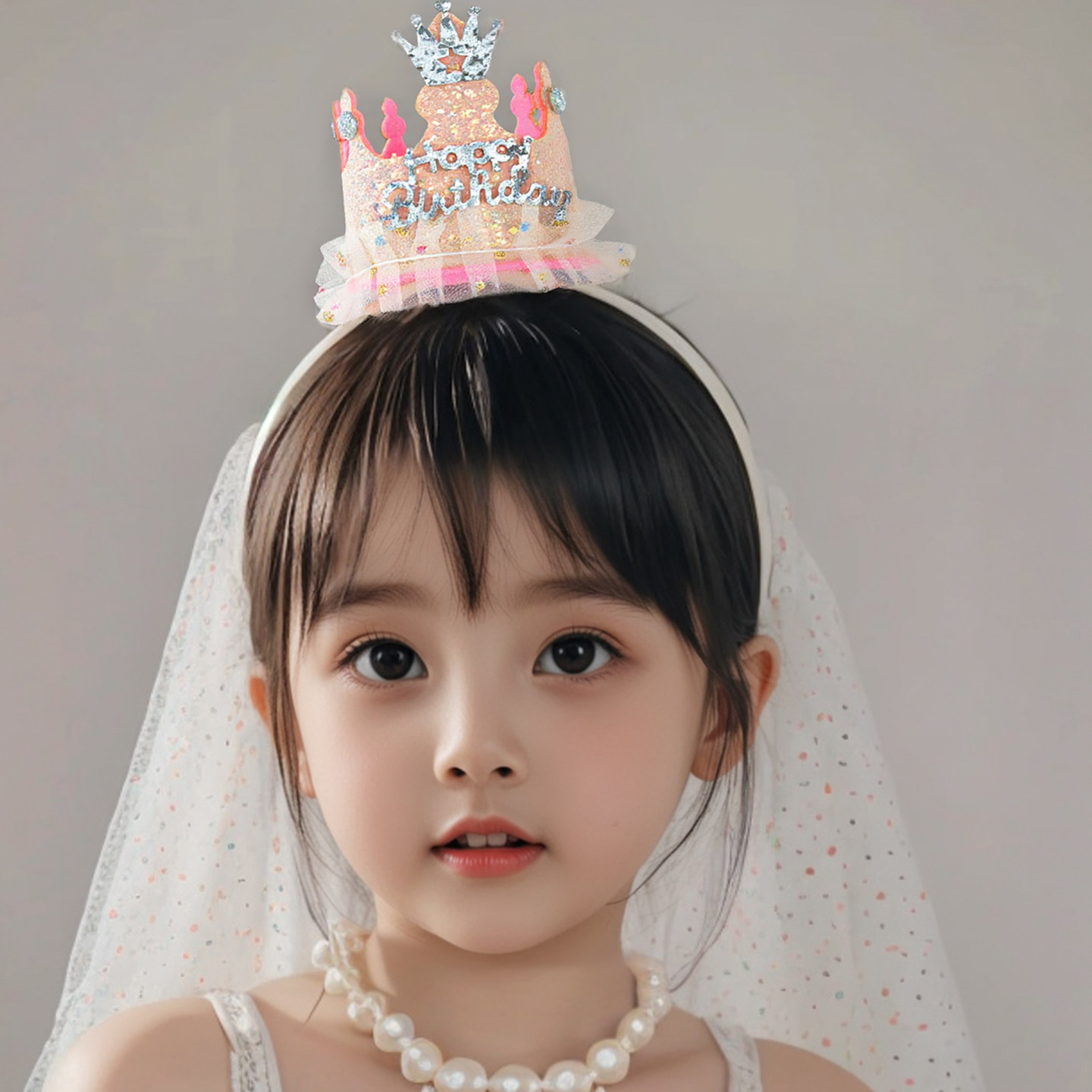 📚 儿童生日帽公主风周岁头饰发箍头纱女童宝宝场景装饰拍照道具红色