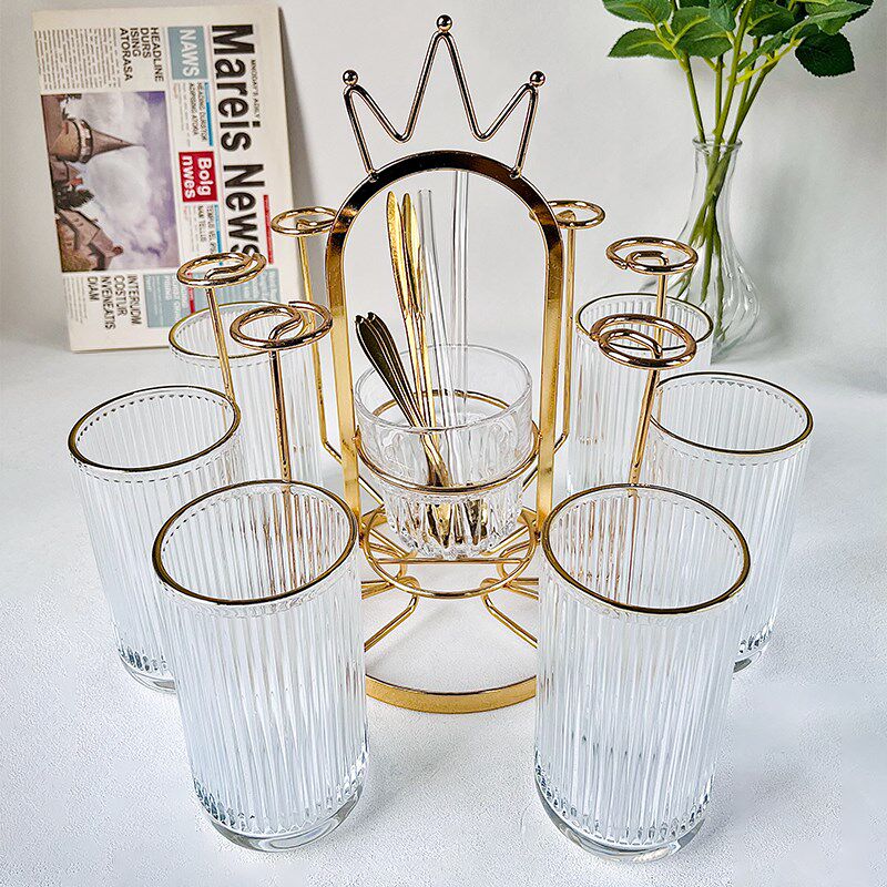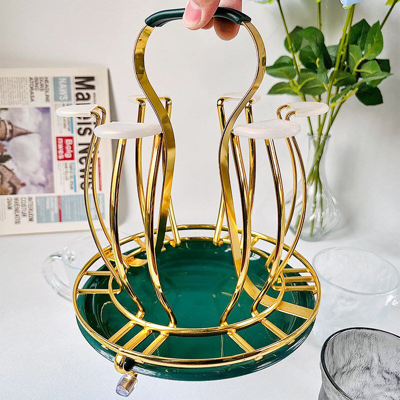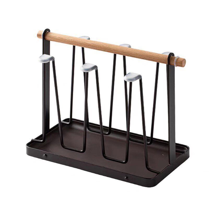 📚 铁艺挂架沥水架置物架家用带托盘杯玻璃水杯架创意收纳杯子架倒挂