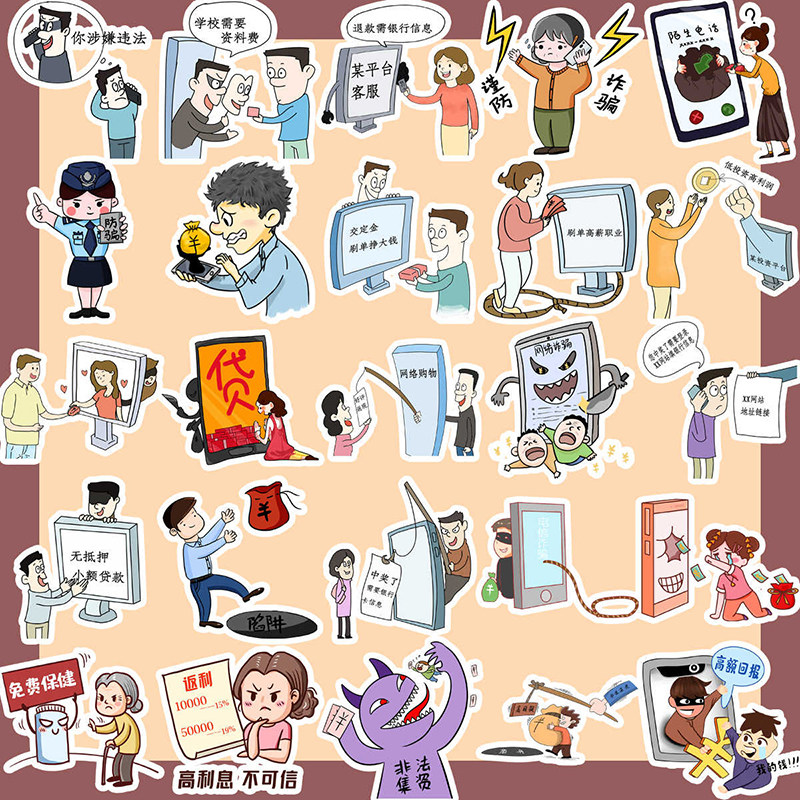 📚 卡通预防电信诈骗网络安全宣传贴纸手账手抄报小学生不干胶贴纸