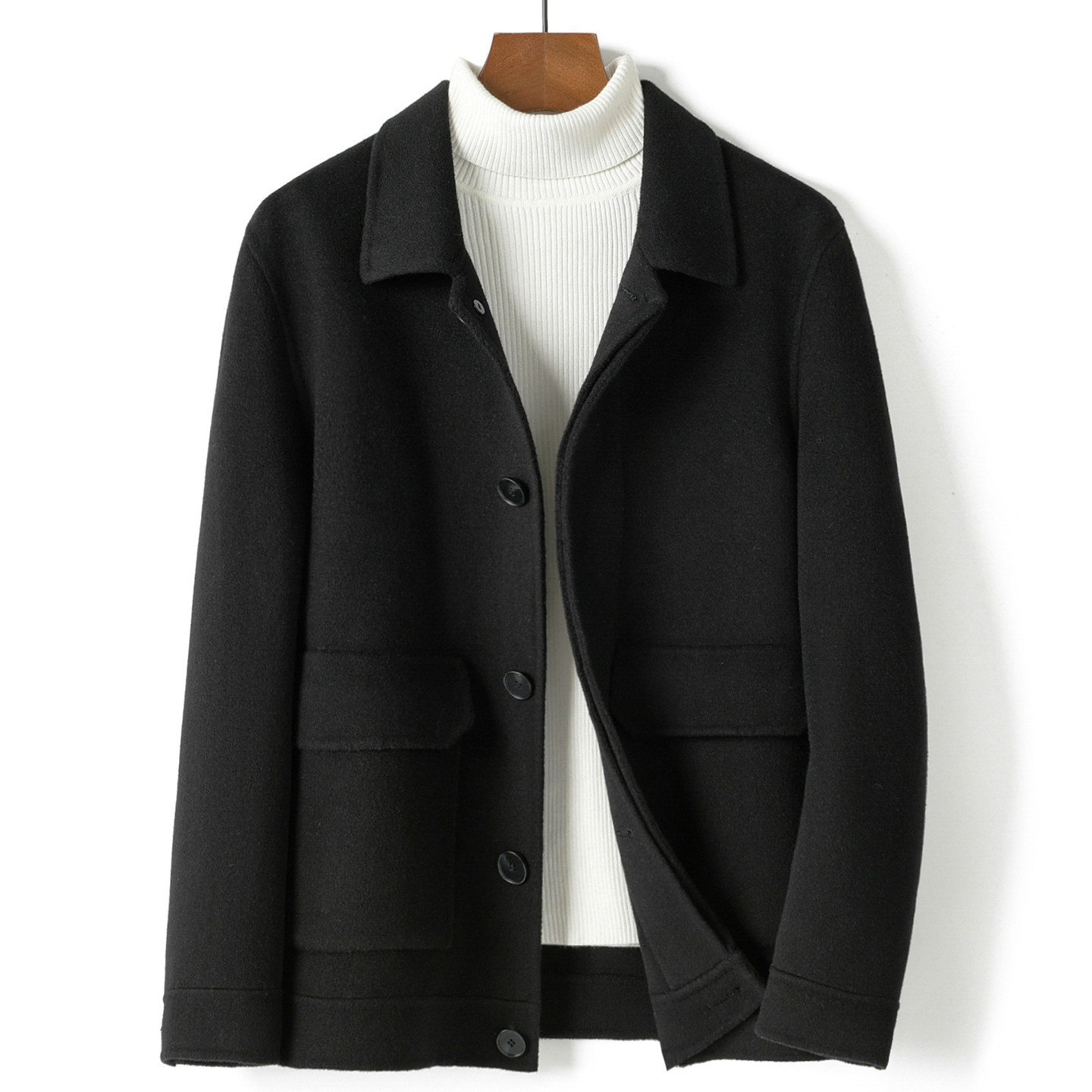 📚 秋冬双面呢全羊毛夹克男士短款翻领毛呢子大衣非羊绒时尚通勤外套