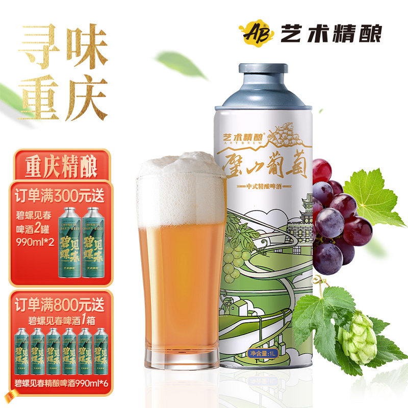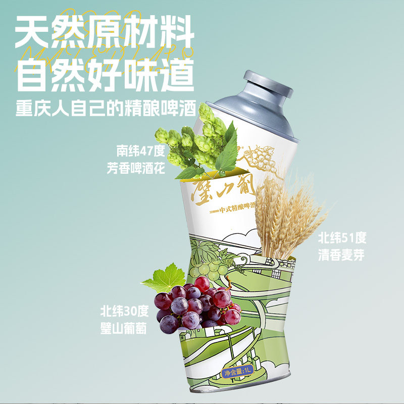 📚 艺术精酿璧山葡萄中式果味精酿原浆啤酒重庆啤酒整箱送礼精酿1L*6
