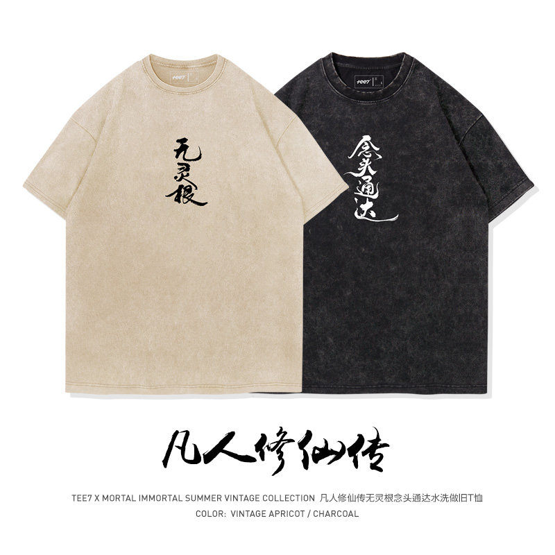 📚 TEE7-国漫凡人修仙韩立厉飞雨无灵根幽默水洗做旧纯棉国潮短袖T恤