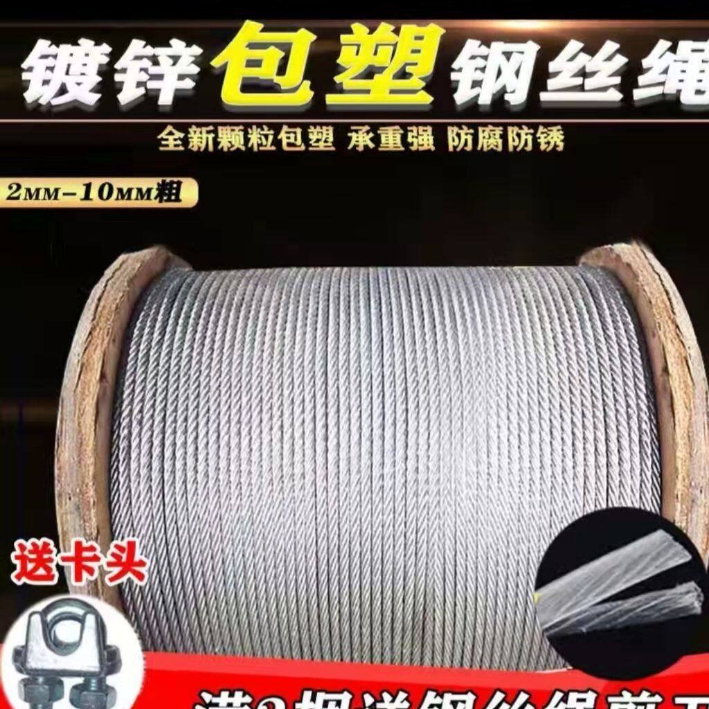 📚 包塑料镀锌钢丝绳包胶镀锌钢丝绳透明防水晾衣绳葡萄架安全钢绳