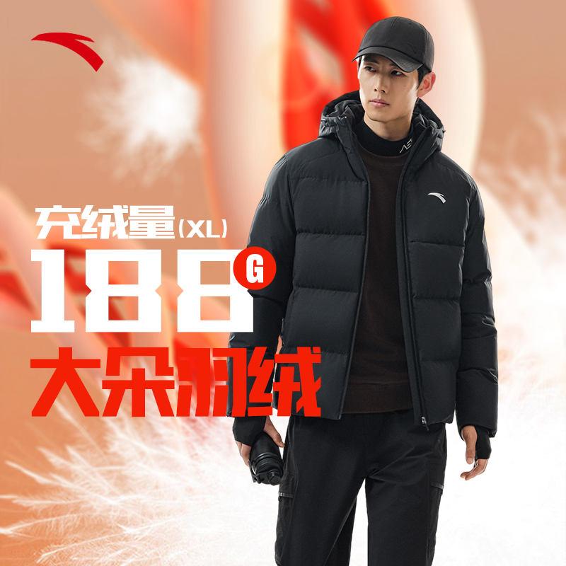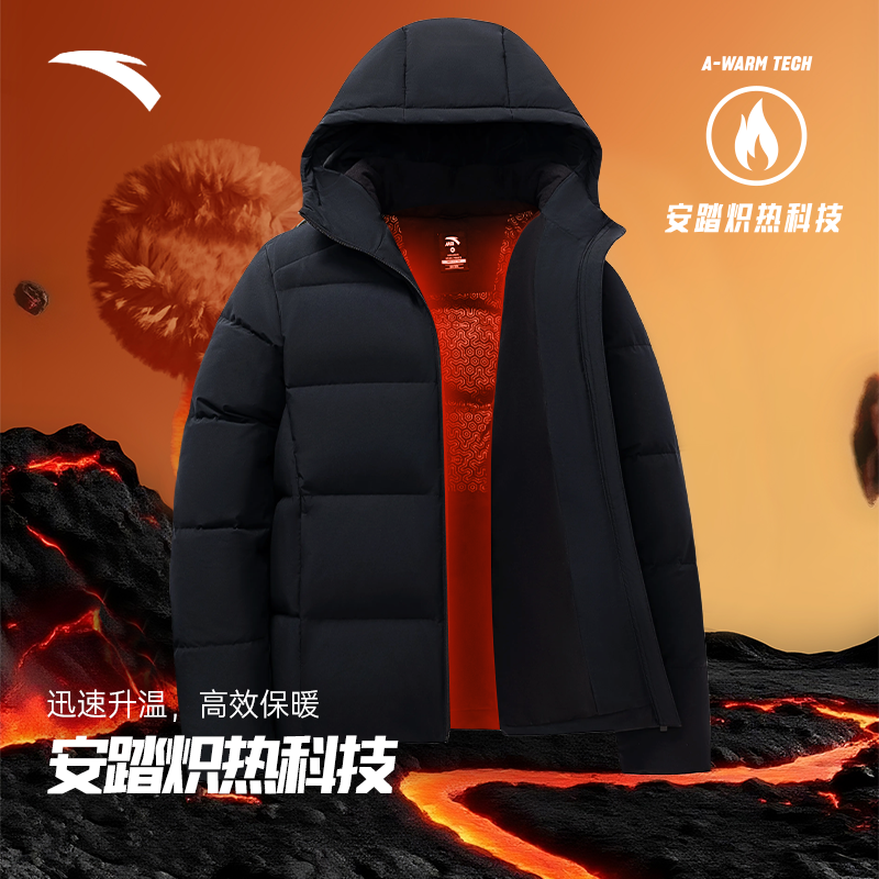 📚 安踏羽绒服男款2025冬季新款官方正品速暖防风防泼水男士连帽外套