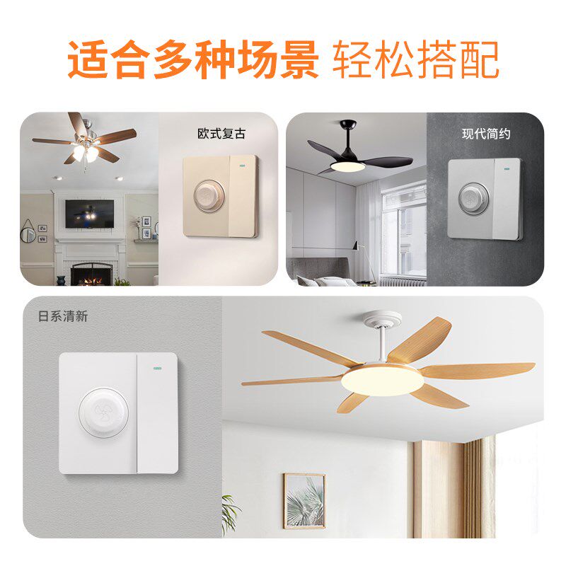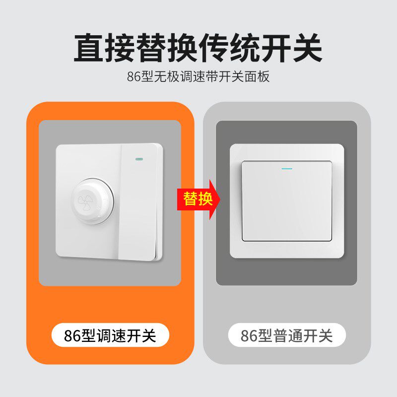 📚 一开双控带吊扇调速器220v无极变速86型老式电机排气风扇调速开关