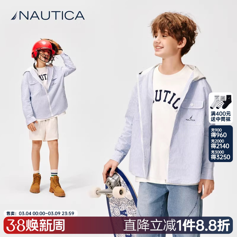 📚 NAUTICA/诺帝卡童装 男童女童薄外套春秋季拼接连帽竖条纹衬衫