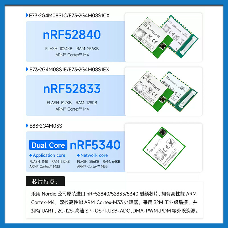 📚 nRF52840/52833/5340无线ZigBee蓝牙Mesh串口模块BLE4.2/5.0/5.4