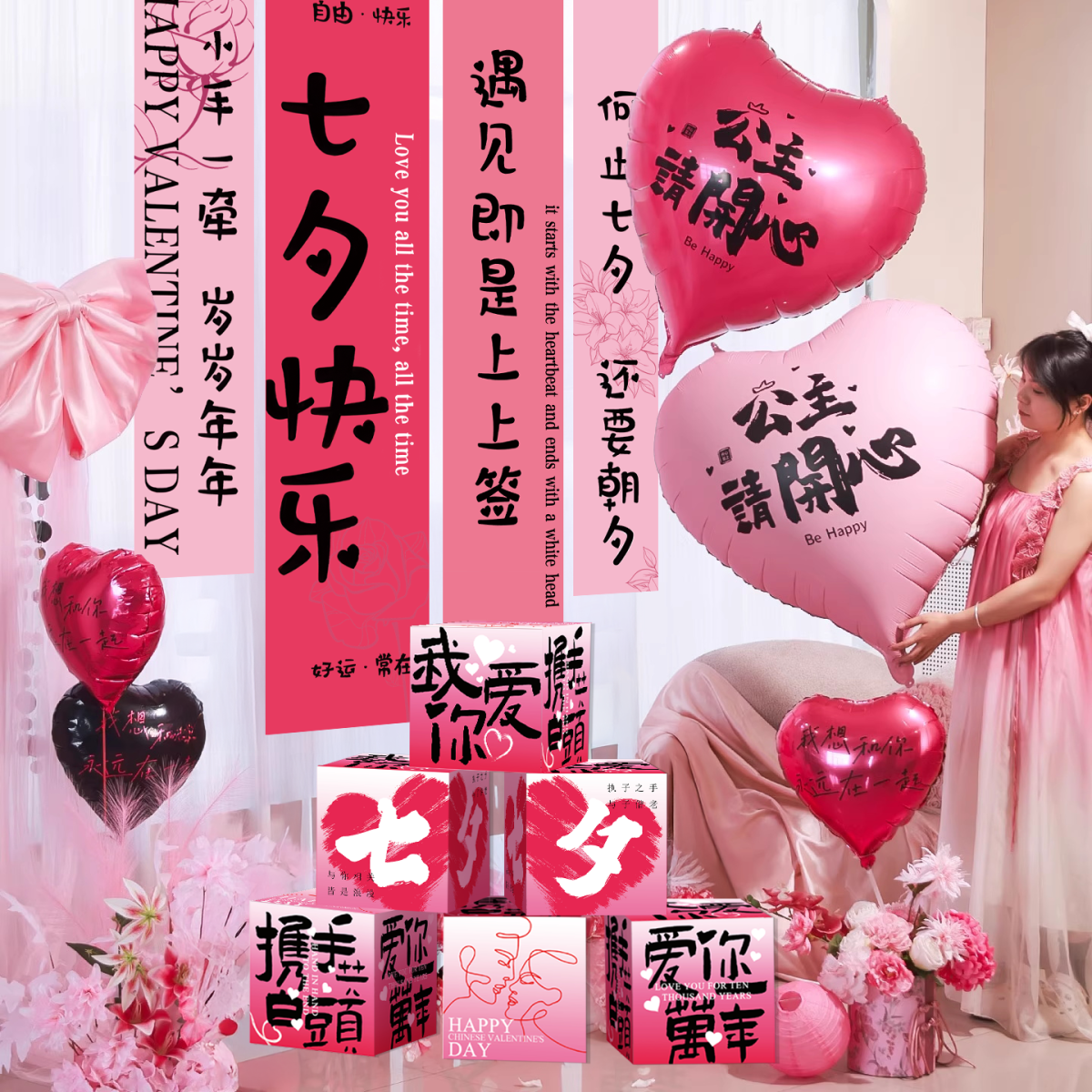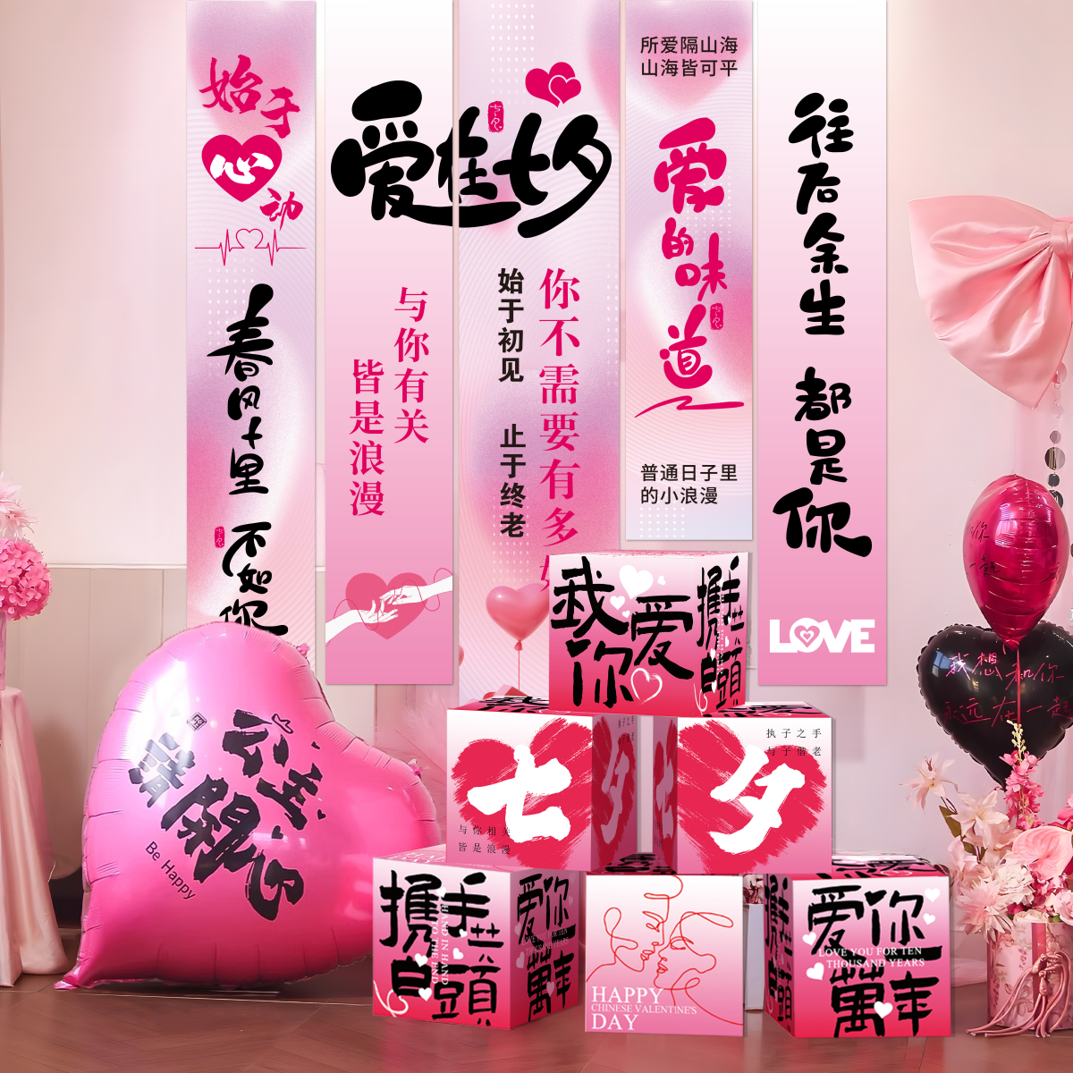 📚 七夕节氛围珠宝店求婚布置装饰布条条幅商场店铺告白道具场景挂布