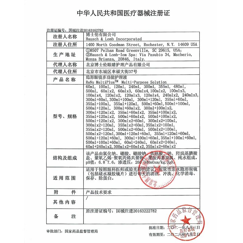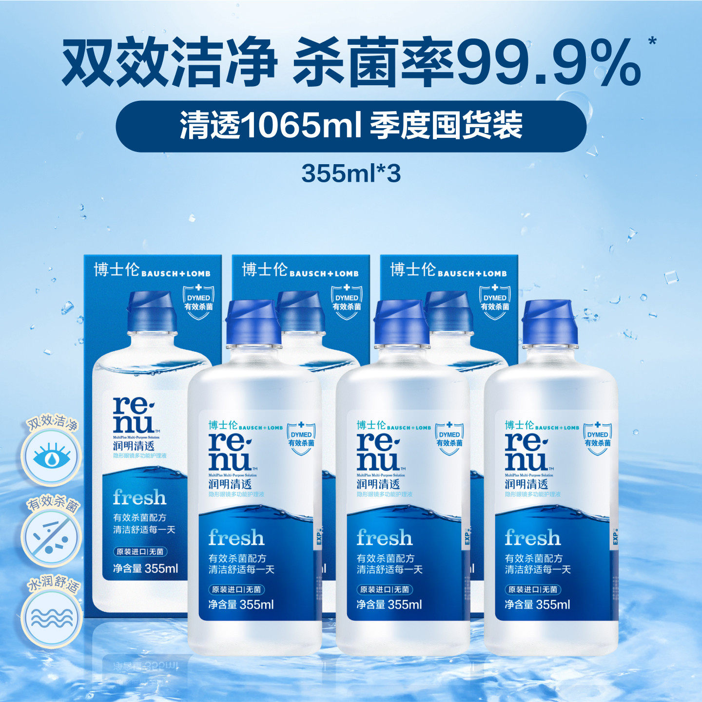 📚 博士伦润明清透355ml护理液套装120ml美瞳药水隐形官方正品