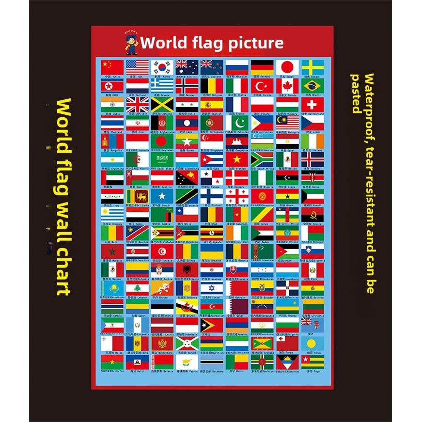 📚 宝宝识世界国旗挂图世界各国国旗儿童认知挂图启蒙教育墙贴画海报