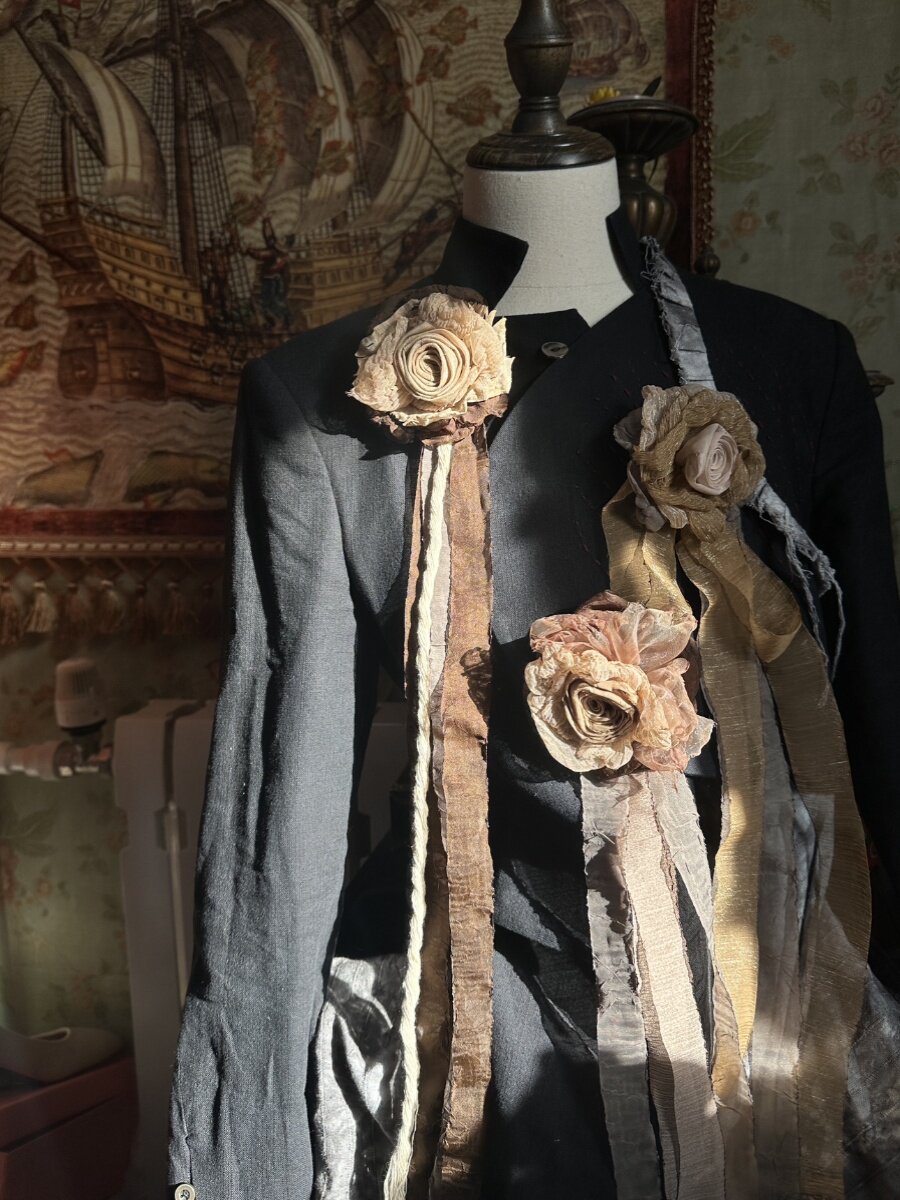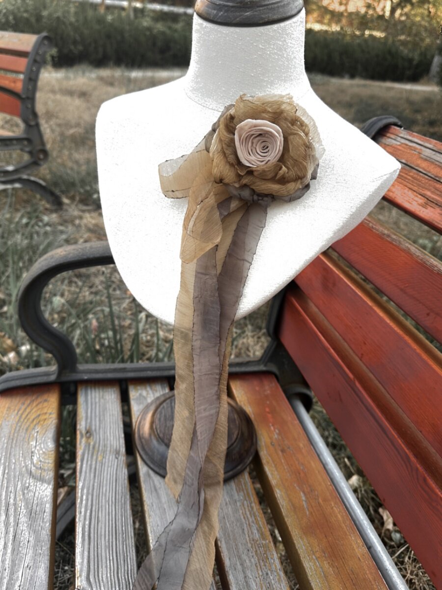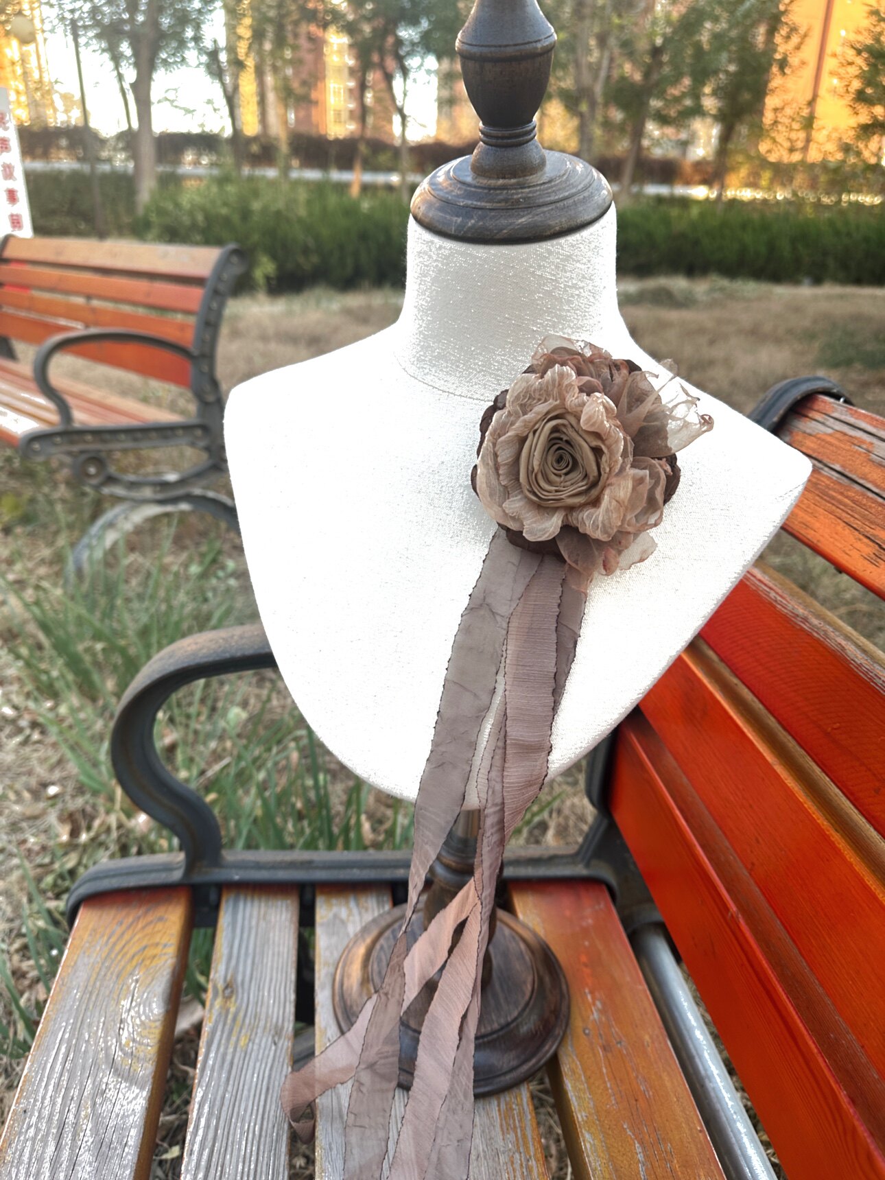 📚 TeNg原创【煎茶】系列手作干枯玫瑰胸针 秋冬大衣配饰复古长飘带