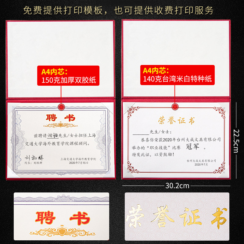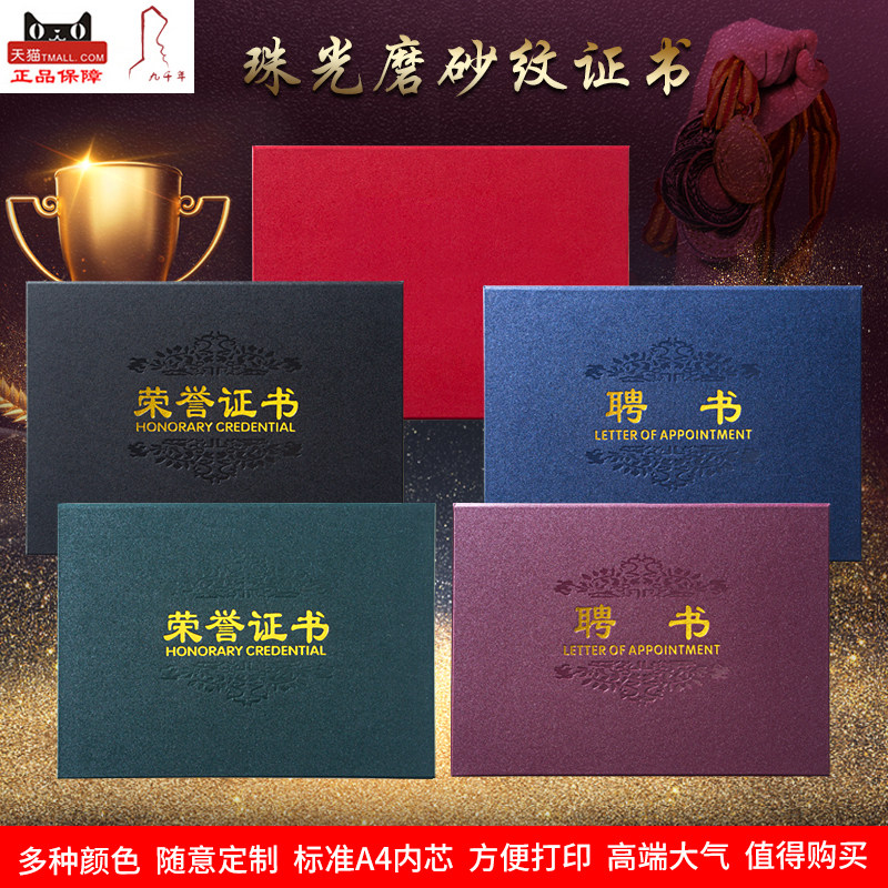 📚 九千年正品荣誉证件书A4横款空白证书荣誉证书聘书空白证书个性结业证书聘书横向奖状支持打印定制定做LOGO