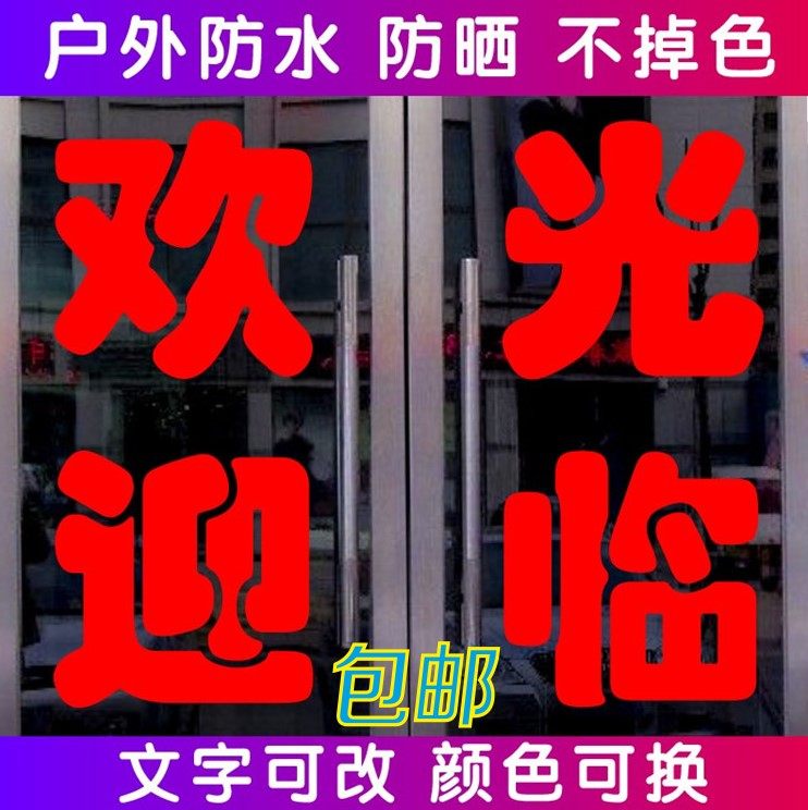 📚 欢迎光临玻璃门贴纸饭店商铺推拉移门广告字贴画文字定做防水自粘