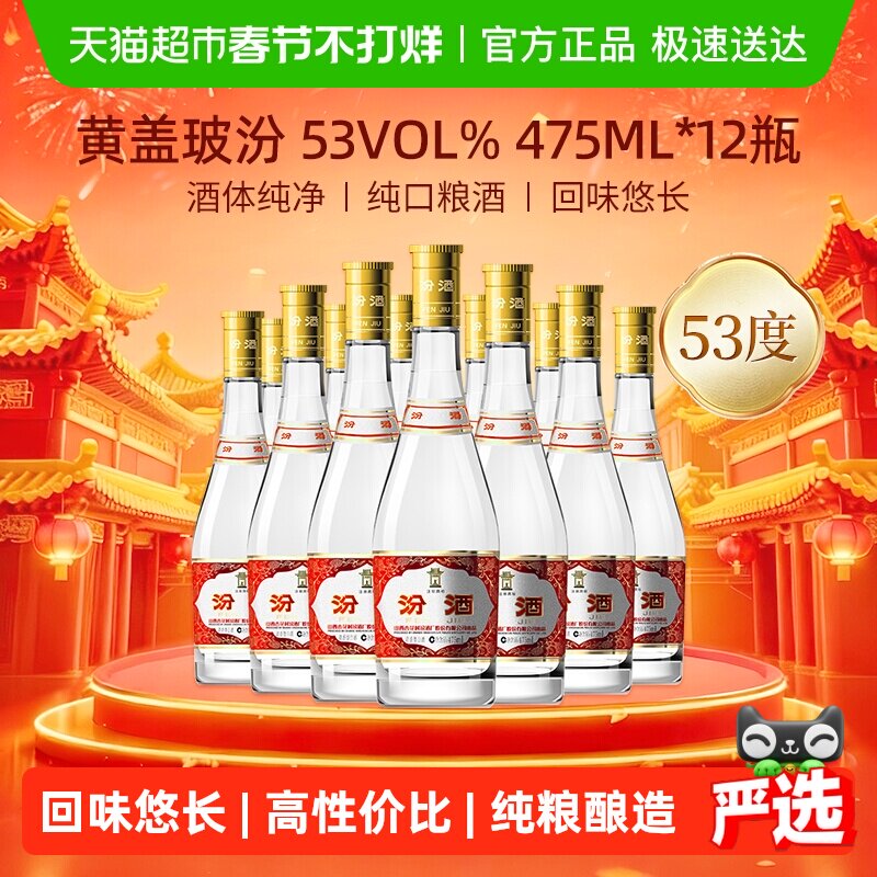 📚 汾酒山西杏花村53度黄盖玻汾整箱装口粮酒清香型白酒