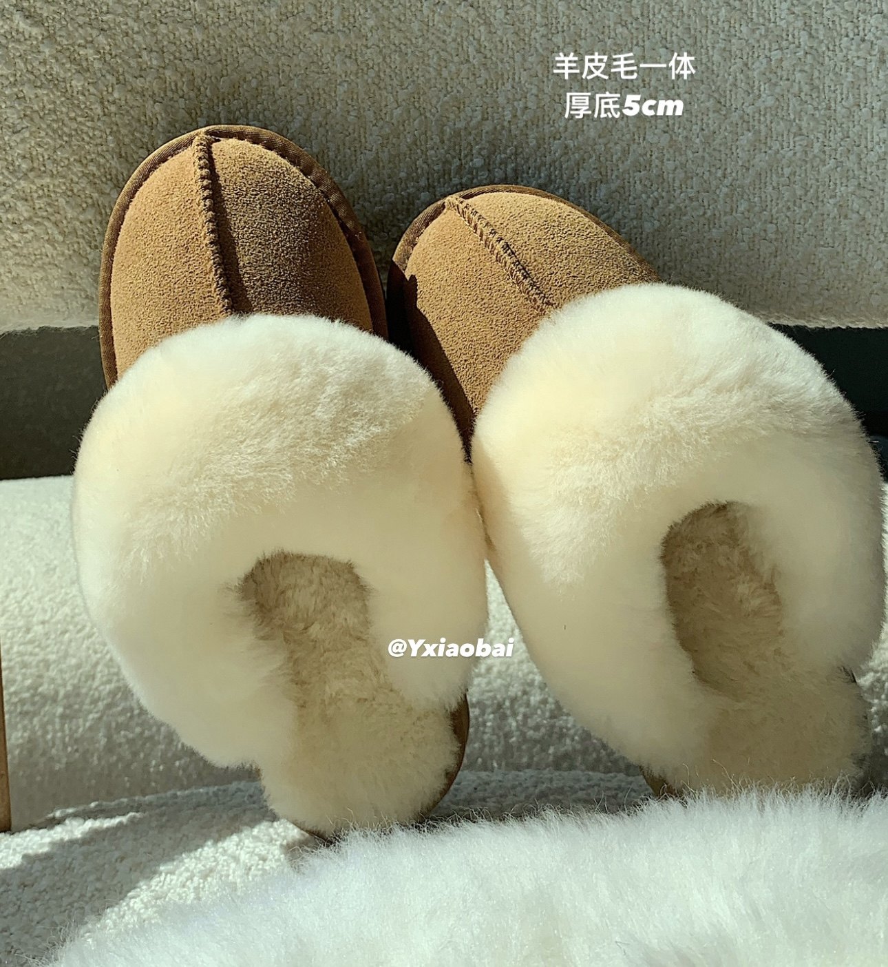 📚 原小白白 皮毛一体真皮羊毛雪地厚底毛毛拖 半包包头毛毛拖鞋外穿