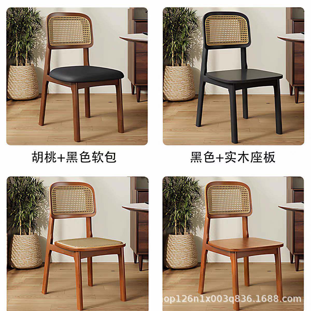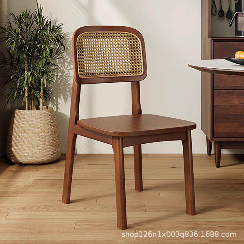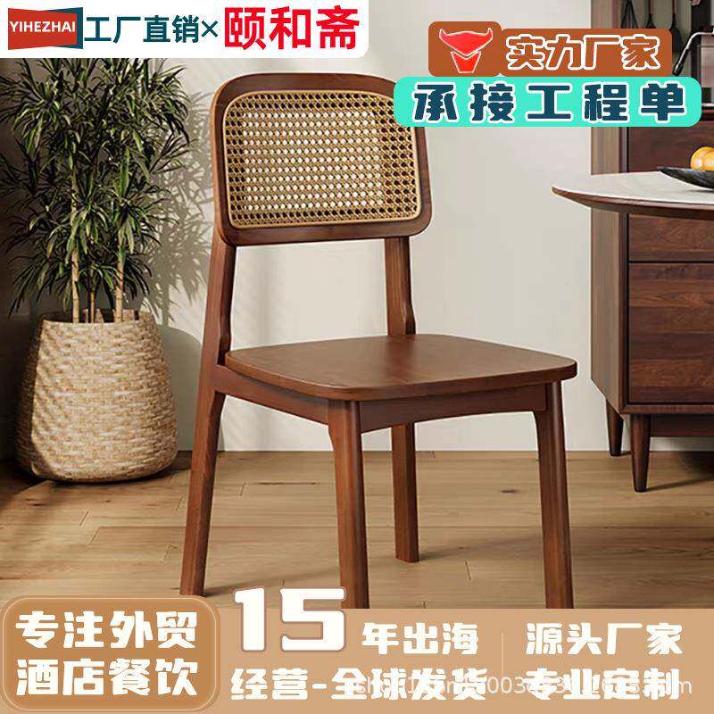 📚 中式藤编餐椅卡曼靠背椅北欧简约现代复古休闲家用民宿餐厅实木椅