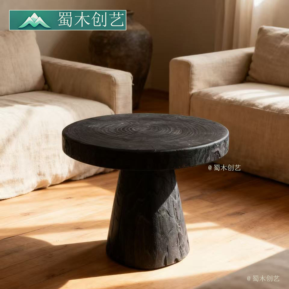 📚 诧寂风圆茶几民宿设计师树墩茶台边几创意干泡台原木圆餐桌矮桌子