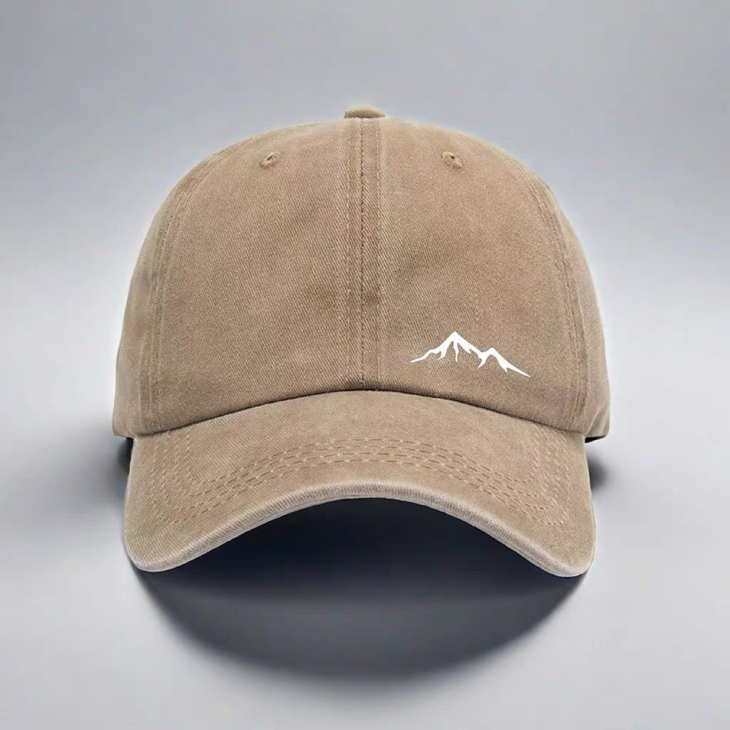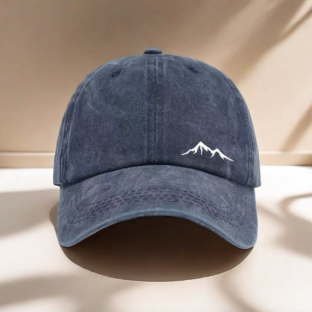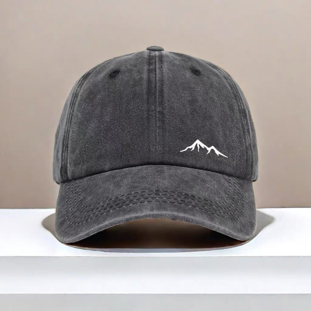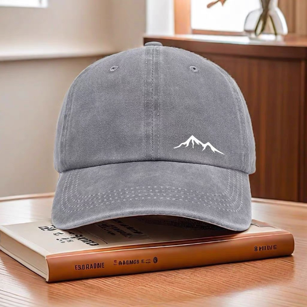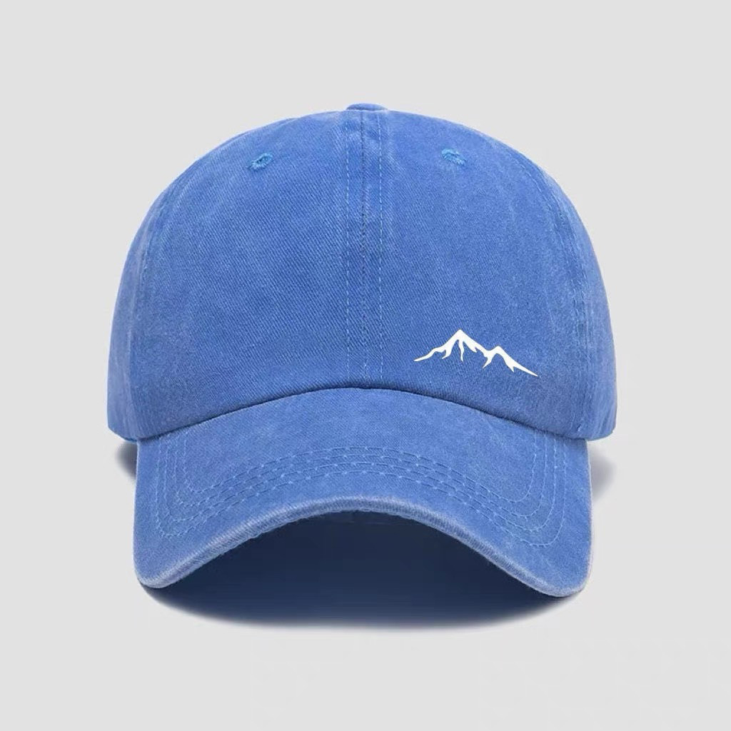 📚 山峰主题印花棒球帽男女复古做旧弯檐帽子男户外软顶遮阳鸭舌帽