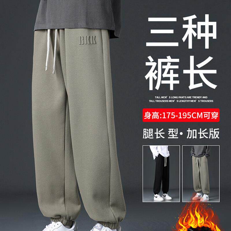 📚 秋冬男裤加长版羊毛衬里190瘦高男孩绑腿运动裤120cm运动休闲裤
