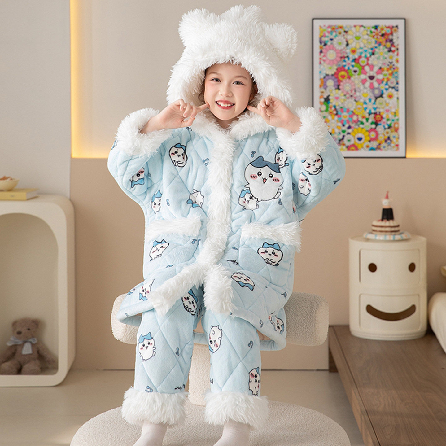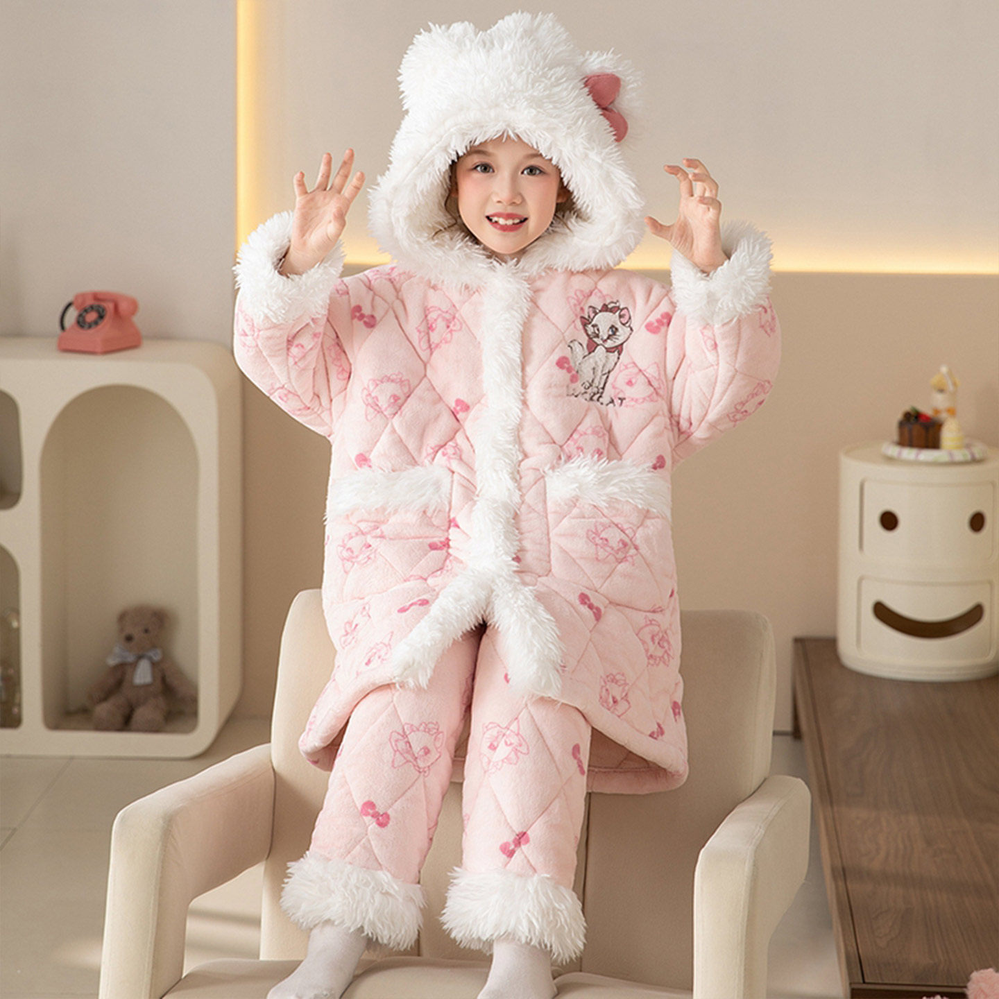 📚 女童睡衣冬款小丑鱼儿童珊瑚绒三层夹棉加厚睡袍套装加绒女孩浴袍