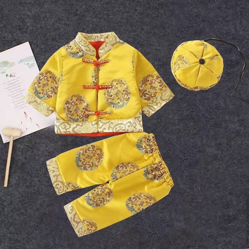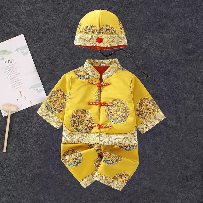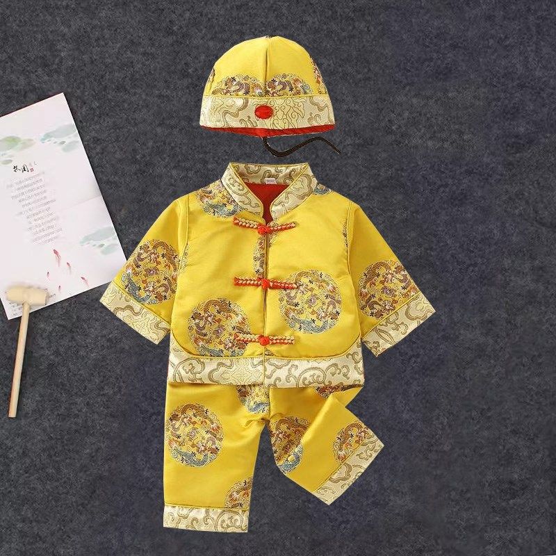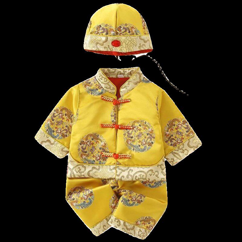 📚 小孩少爷唐装国风男宝宝地主百天黄马褂婴儿龙袍男童周岁礼服春秋