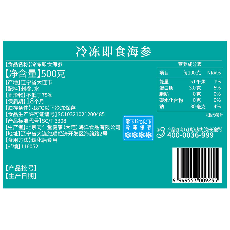 📚 【正宗同仁堂品牌】北京同仁堂冷冻即食海参大连辽参礼盒装旗舰店