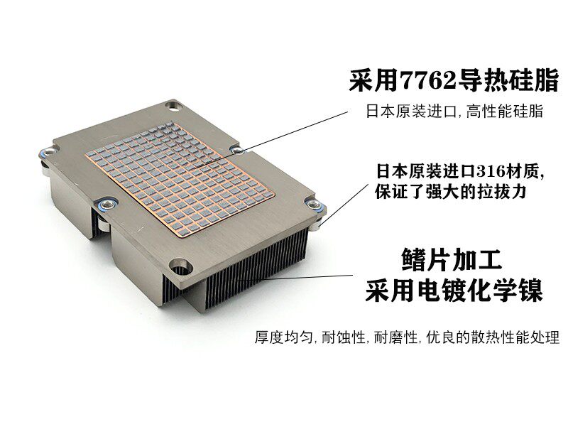 📚 适用1U被动3647长方形散热器R72 铝鳍片铜芯3204 1U服务器音CPU